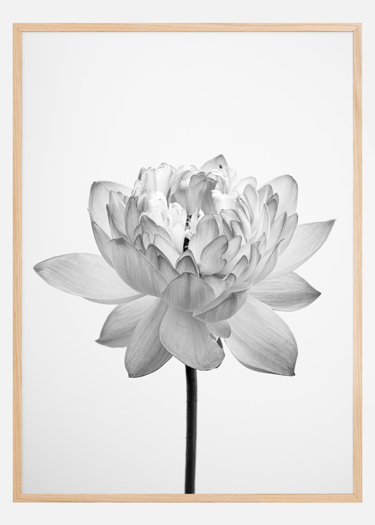 Tento plakát zobrazuje nadčasový a elegantní černobílý obraz květiny v plném květu. Detailní zpracování každého listu ukazuje umění přírody a nabízí téměř meditativní pohled. Tento jednoduchý, ale silný obraz je studií tvaru, světla a stínu a toho, jak tyto prvky spolupracují na zvýraznění krásy přírodního světa.