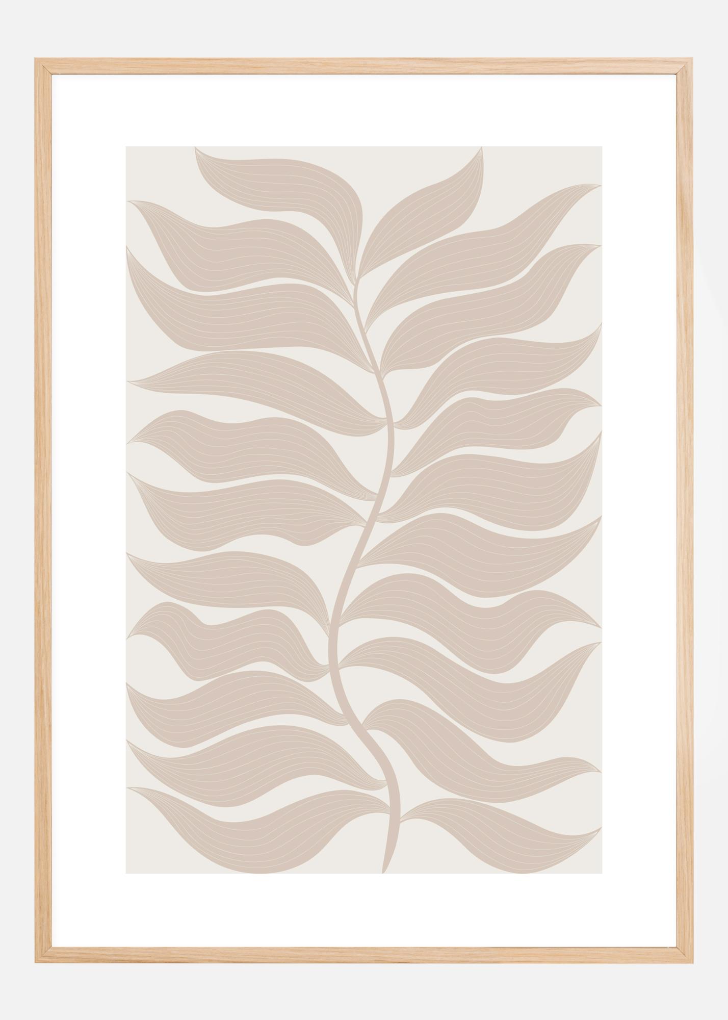 Botanický plakát s listy. Tento jemný obraz zobrazuje měkký, jednoduchý obrázek jedenácti listů na každé straně stonku. Na bílém pozadí je to ideální tisk pro všechny milovníky přírody nebo ty, kteří se zajímají o listí.