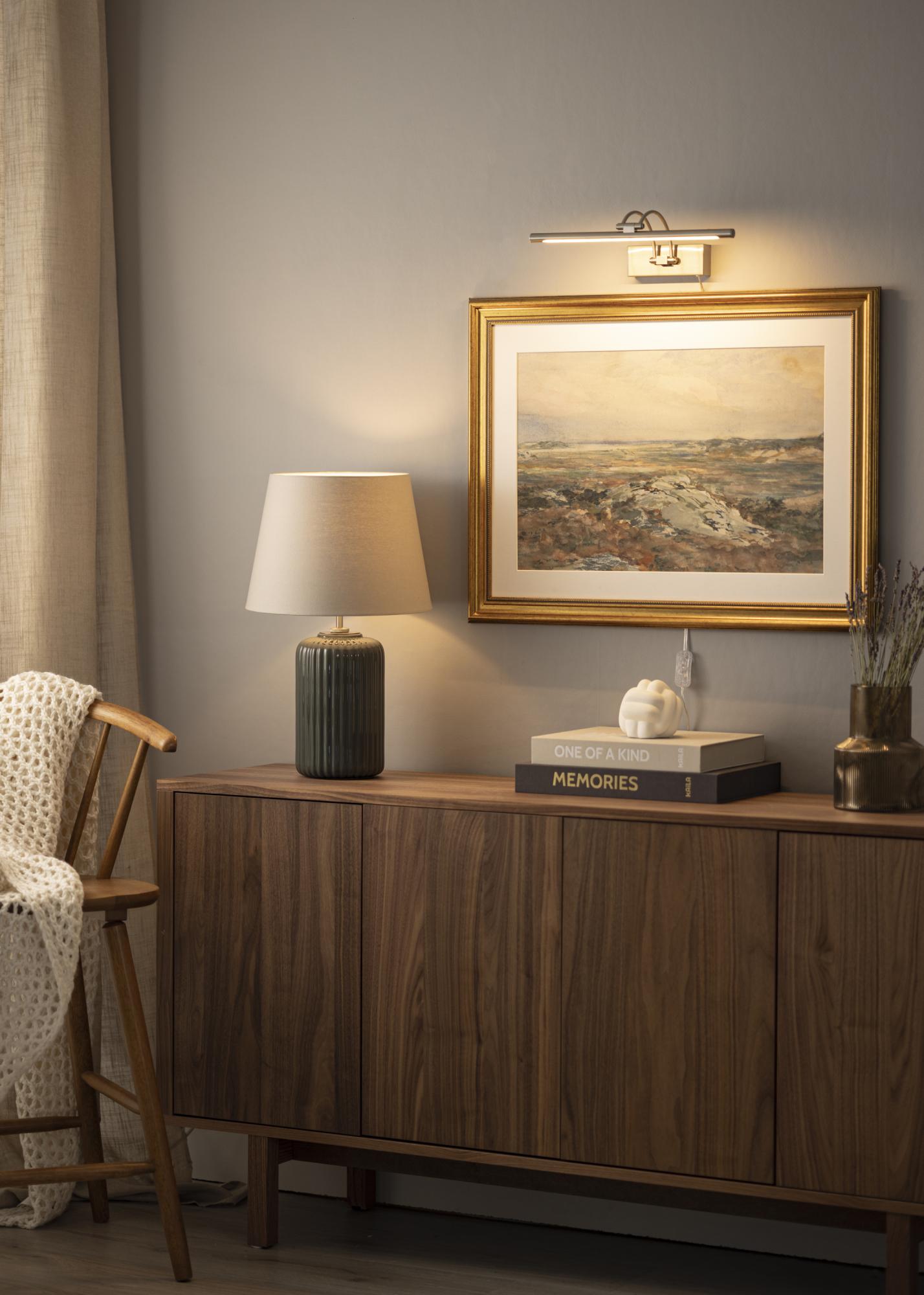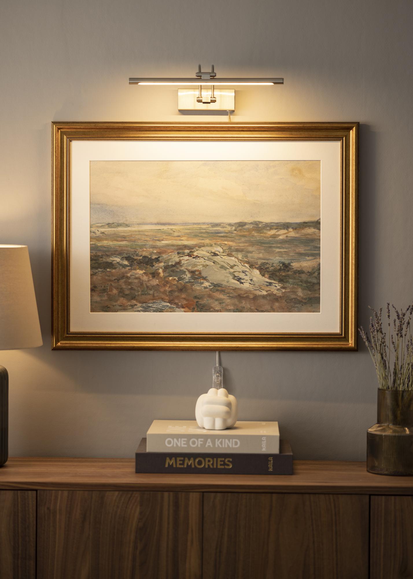 Osvětlení obrazu v moderním švédském designu, které se hodí pro obrazy o šířce 60-100 cm. Svítidlo má výšku 5 cm a délku 37 cm s odstupem od zdi 20 cm. Díky svému silnému LED osvětlení o 720 lumenech získáte příjemné osvětlení i na větších obrazech.