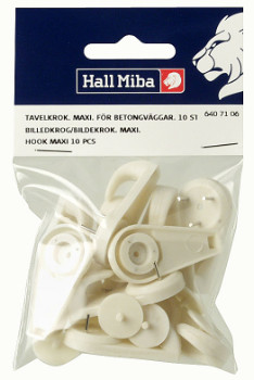 Sku:Velký hákový hák v balení po 10 pro betonové stěny, který vám umožní vyhnout se vrtání a komplikacím s hmoždinkami. Vhodné pro lehčí obrazy.