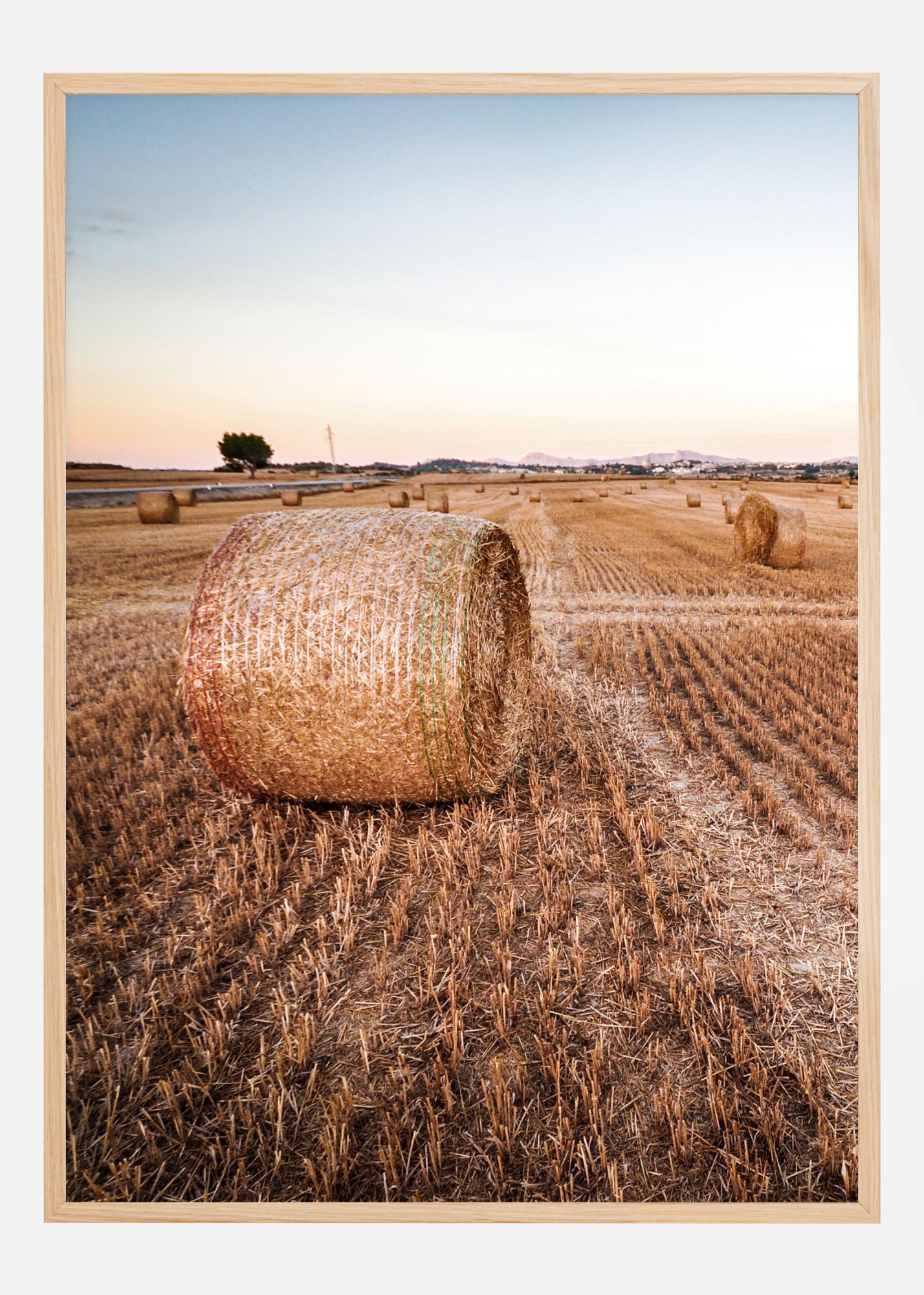Jednoduchý, ale krásný plakát s přírodním motivem. Kupka sena v popředí byla pěkně srolována, zatímco v dálce se na polích nachází další roztroušené srolované kupy sena. Světle modrá obloha a teplé hnědé barvy vytvářejí teplý a relaxační obraz, který lze pověsit do venkovské kuchyně.