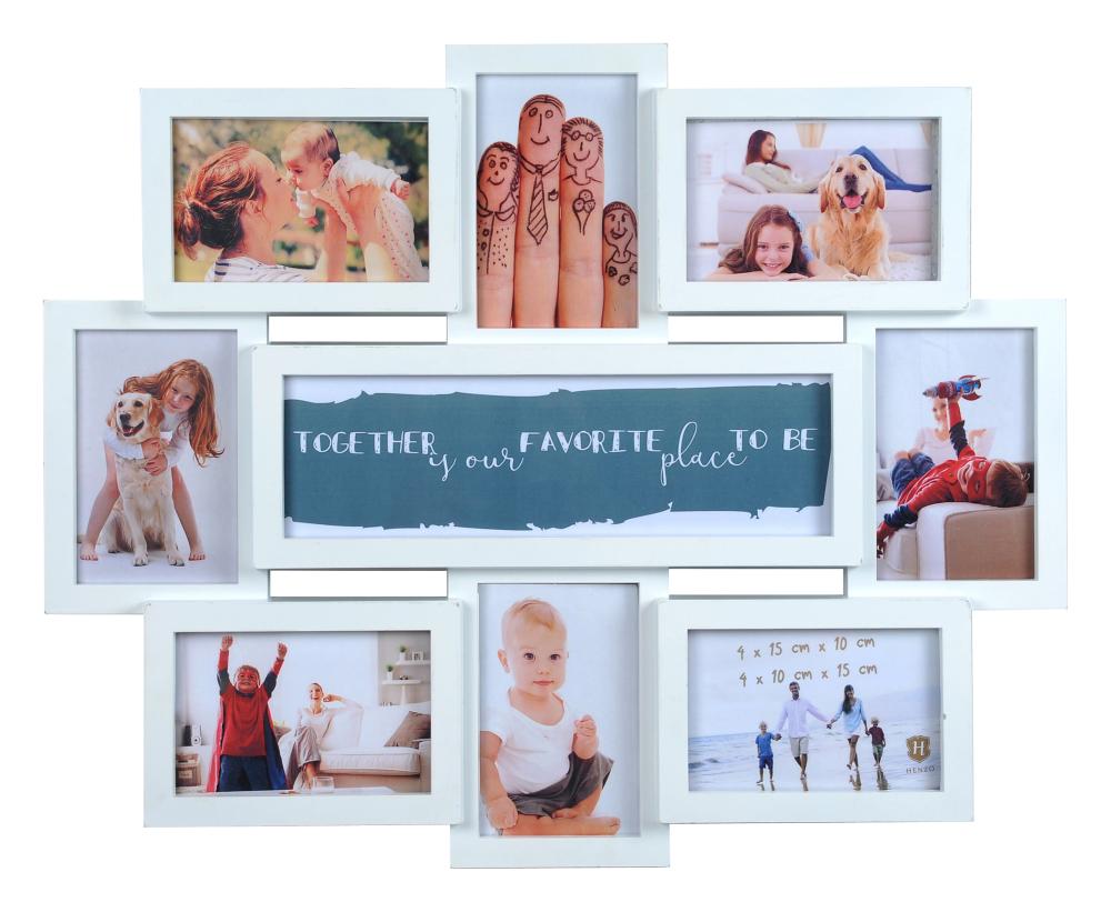Uložte si své nejkrásnější fotografie do stylového kolážového rámečku! Tento rámeček není jen příjemný na pohled, ale lze jej také přepracovat! Součástí balení je totiž 5 roztomilých textů s různými tématy, které umístíte do prostředního (9.) rámečku a vyměníte, když na to máte chuť. Například můžete vložit texty jako "All you need is love" nebo "Say yes to family". Kolážový rámeček je k dispozici v černé a bílé barvě.