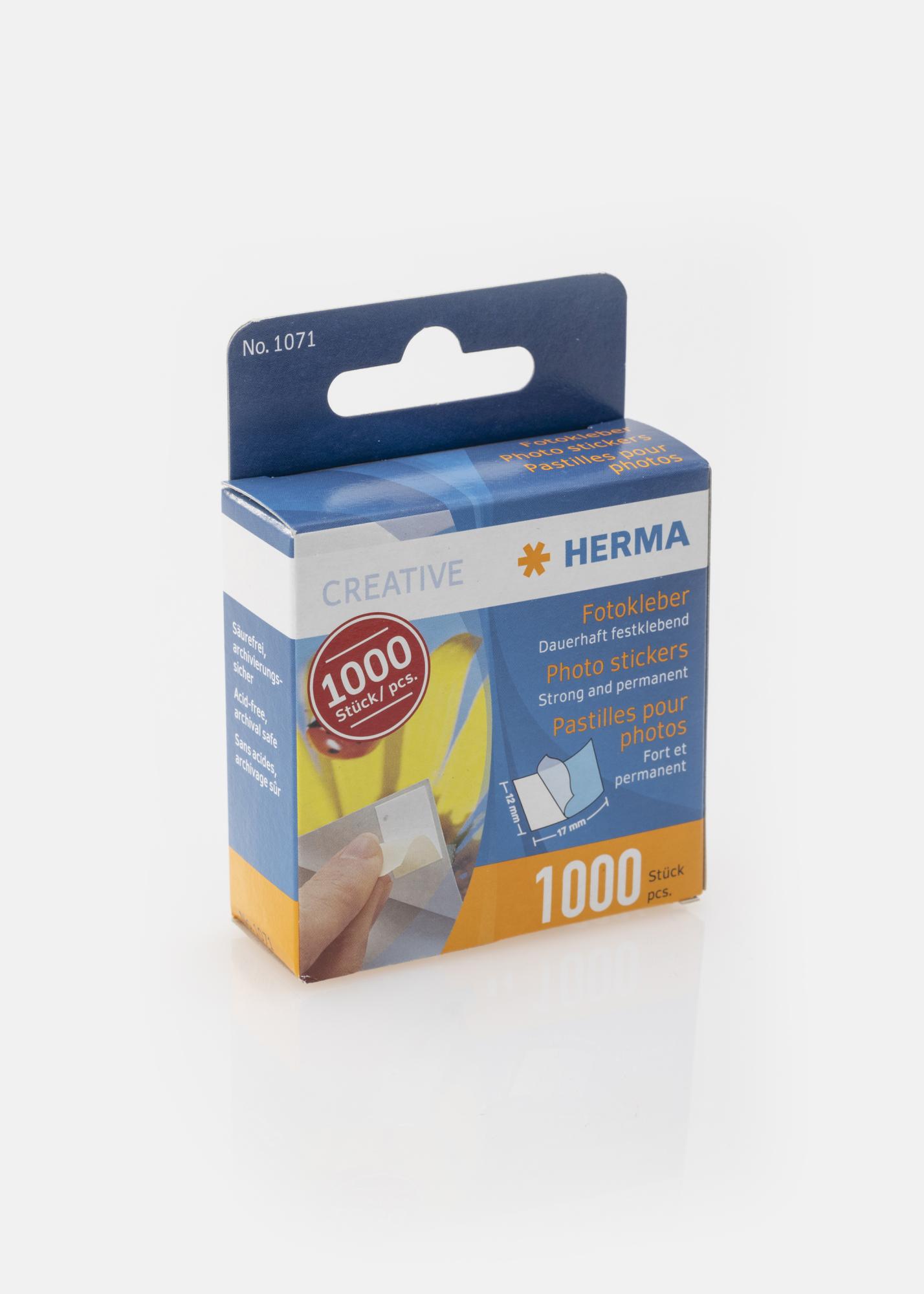 Herma Foto Samolepky jsou oboustranné a používají se k trvalé montáži obrázků. Produkt je samozřejmě bez kyselin a bezpečný pro vaše obrázky. V balení je celkem 1000 Foto Samolepek.