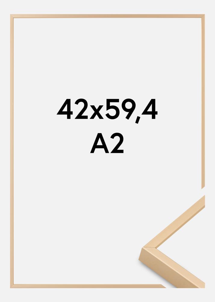 Tento elegantní rám v mosazi je ideální pro zvýraznění vašich oblíbených motivů. S rozměry 42x59,4 cm (A2) je skvělý pro fotografie i umělecká díla. Moderní design s hladkým, matným povrchem a tenkým profilem poskytuje elegantní a minimalistický dojem, díky čemuž obsah skutečně vyniká.