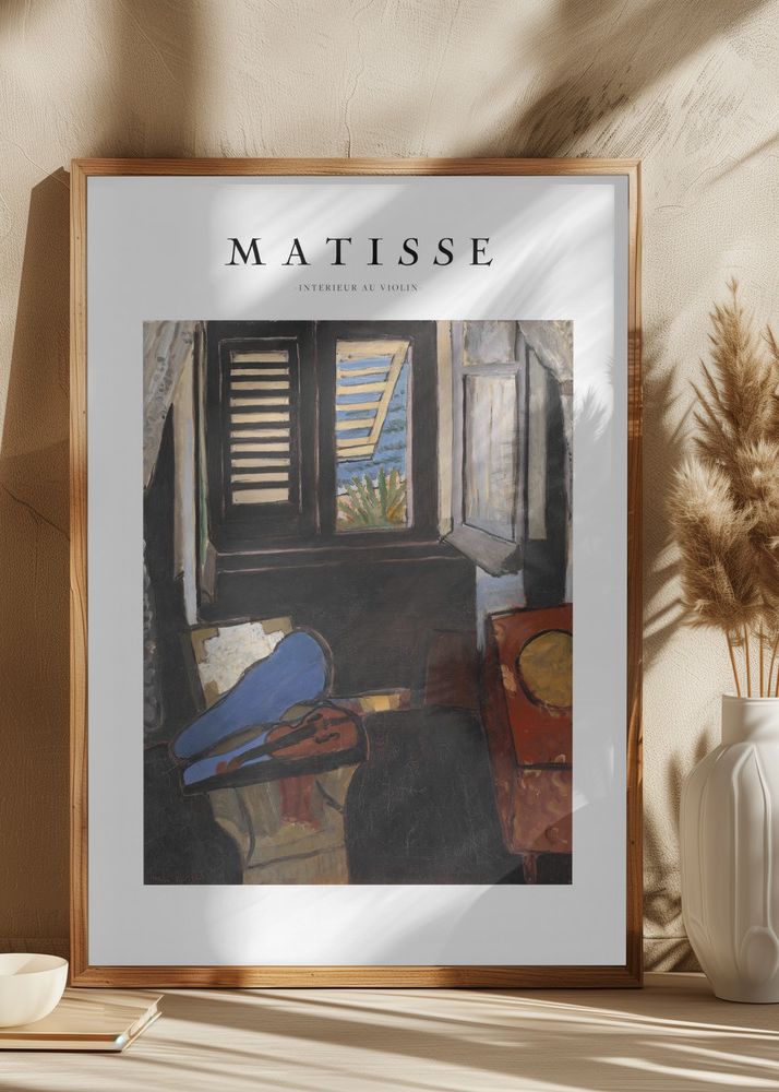 Tento elegantně navržený plakát zobrazuje okouzlující a atmosférický pokoj s otevřením do světa venku. Motiv zachycuje housle, které klidně spočívají na židli, zatímco otevřené okno vpouští zlaté světlo. Tento tisk je ideální pro dodání pocitu harmonie a klasické krásy do každé místnosti.