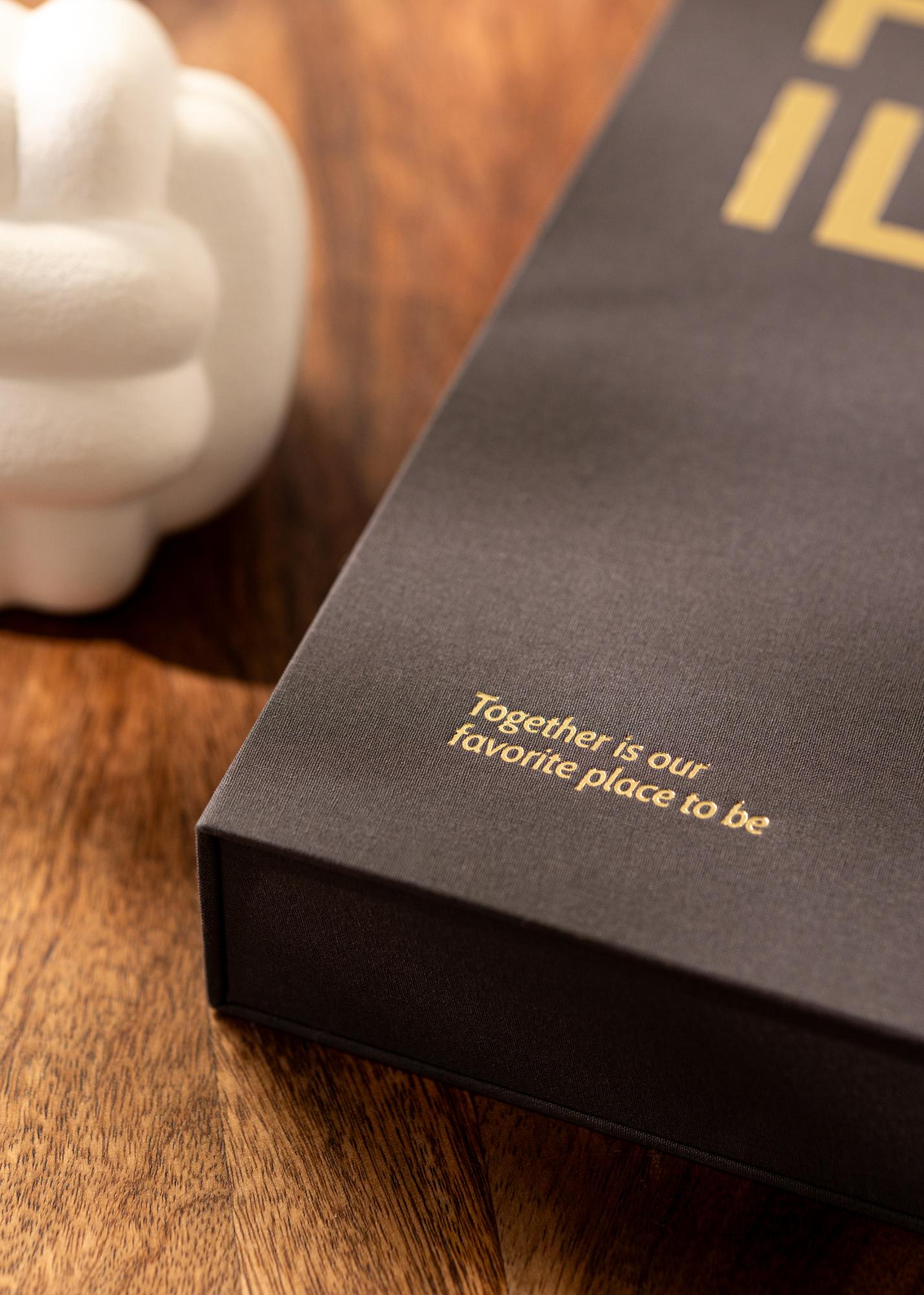 Objevte KAILA FAMILY Black - elegantní a stylové fotoalbum navržené tak, aby fungovalo jako krásná kniha na konferenční stolek. Se svými béžovými deskami a černými stránkami se toto album stane elegantním dekoračním prvkem ve vašem domově, zatímco uchovává vaše vzpomínky vkusným způsobem.