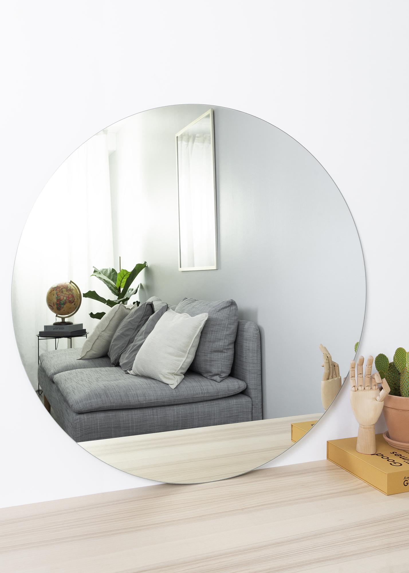 90 cm Ø kruhové zrcadlo, které je součástí série kruhových zrcadel od KAILA. K dispozici je celkem ve 13 velikostech, takže najdete velikost, která dokonale padne do vaší místnosti. Zrcadlo je extrémně tenké a elegantní a hodí se do všech typů místností a stylů interiéru.