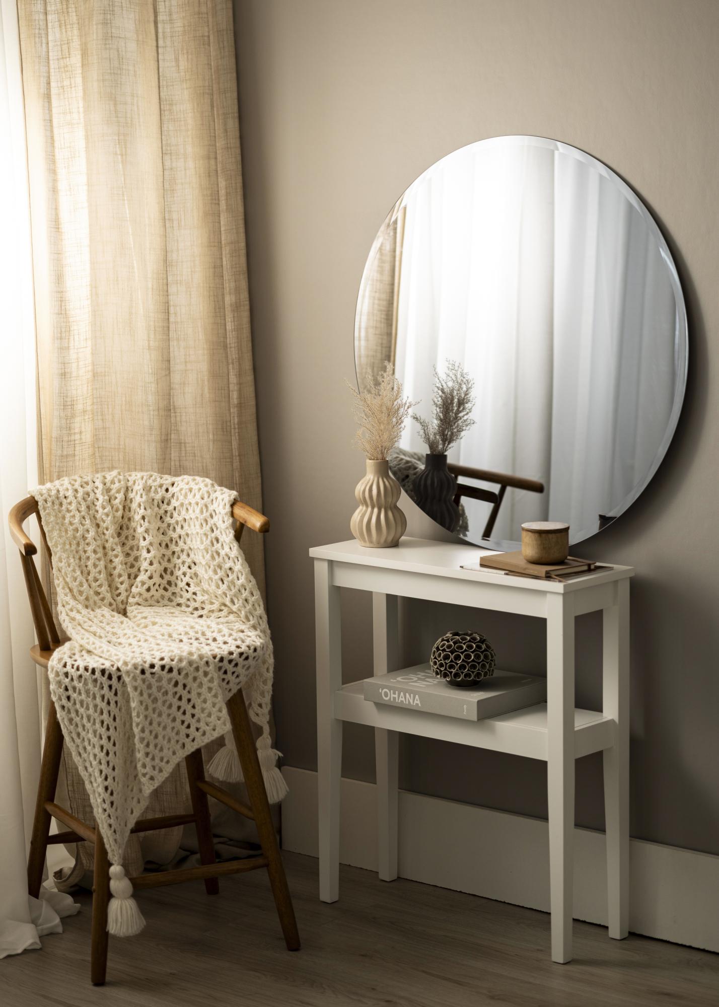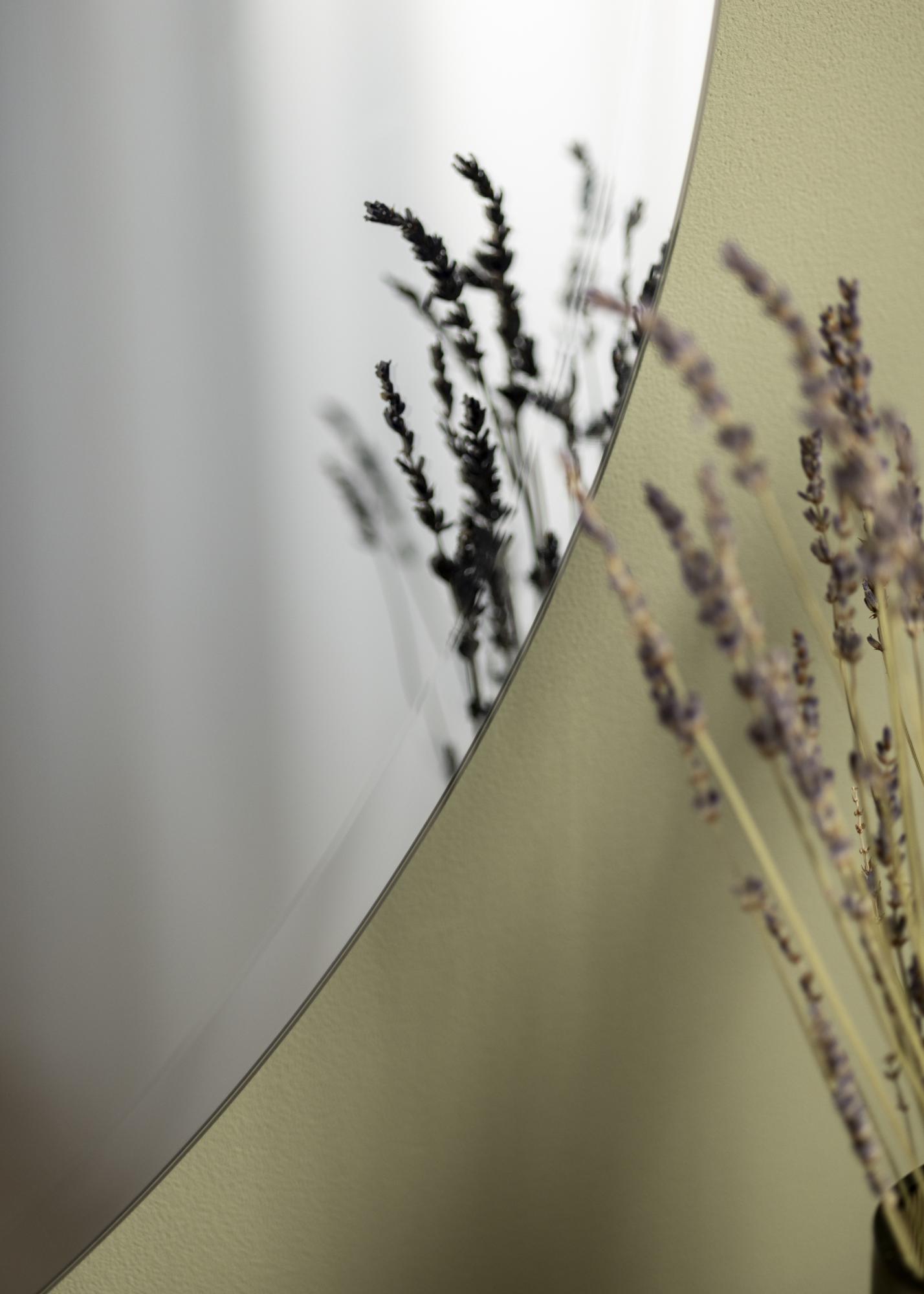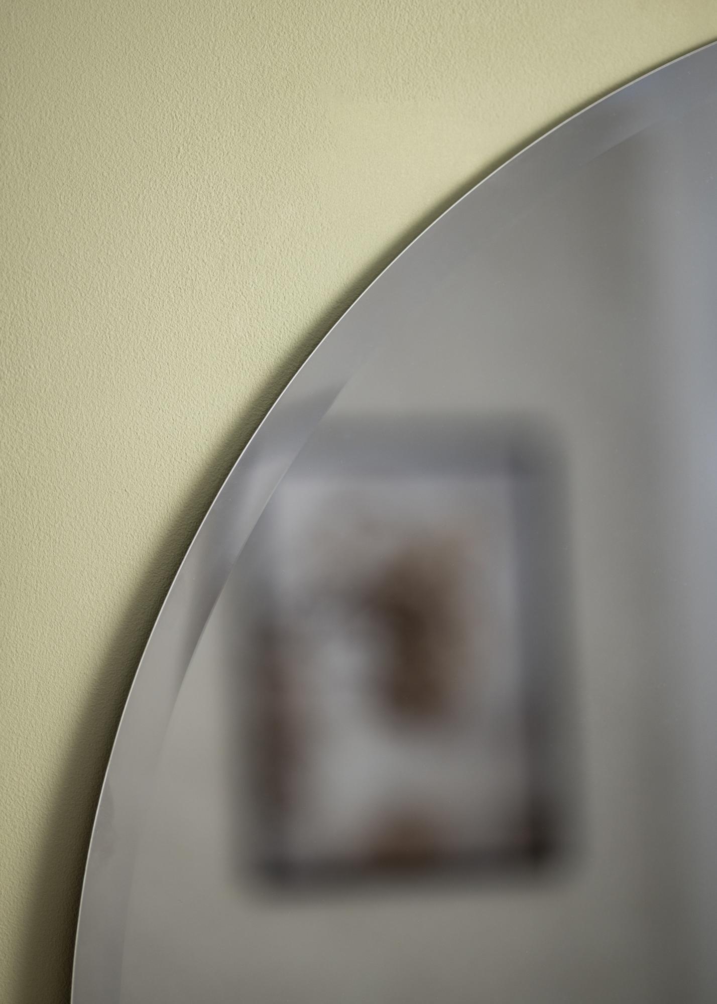 Elegantní pocit, který tvar a barva zrcadla zprostředkovává, je umocněn tím, že zrcadlo nemá žádný rám. Místo toho jsou hrany zdobeny dekorativní fazetou, která zrcadlu dodává něco extra.