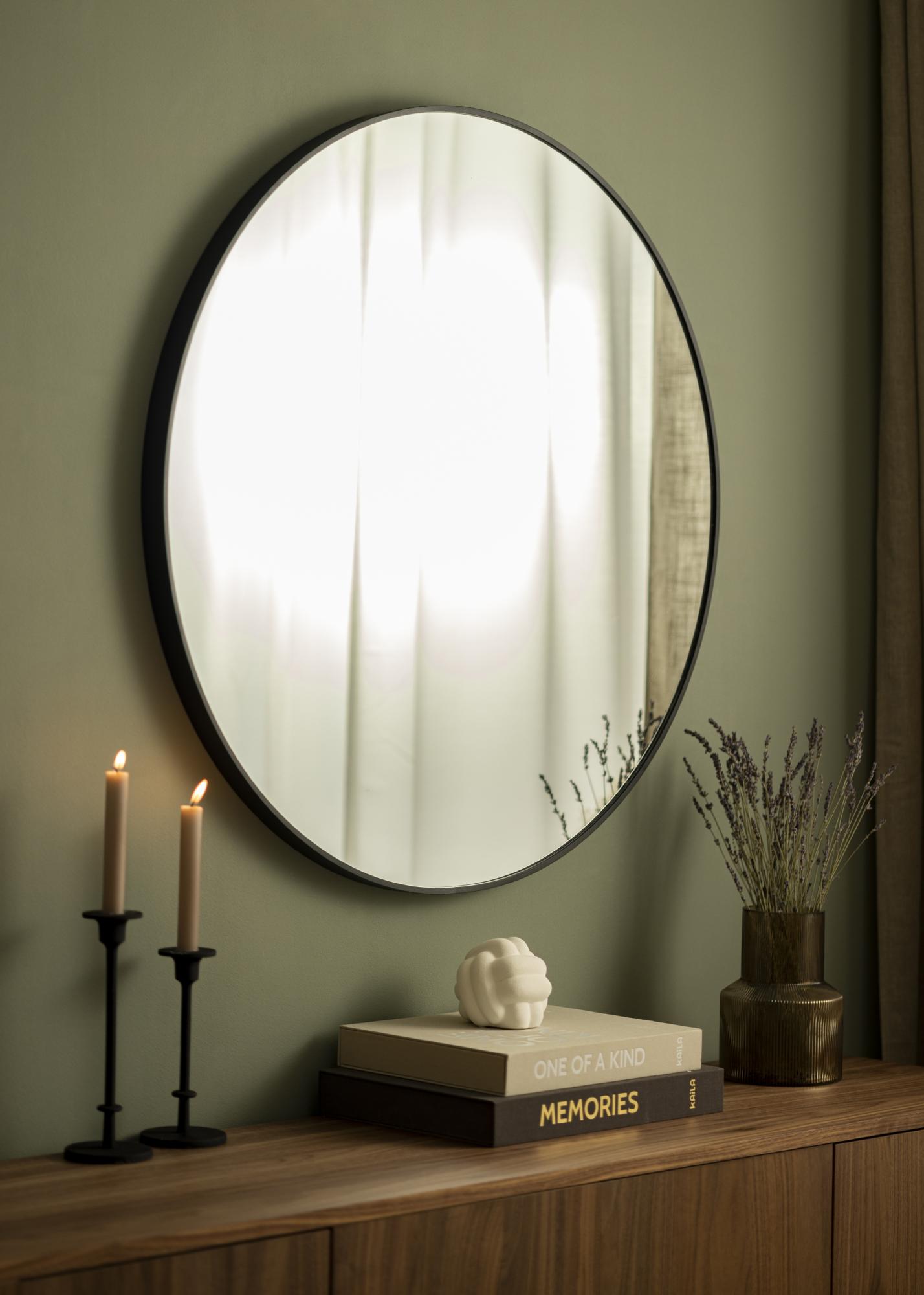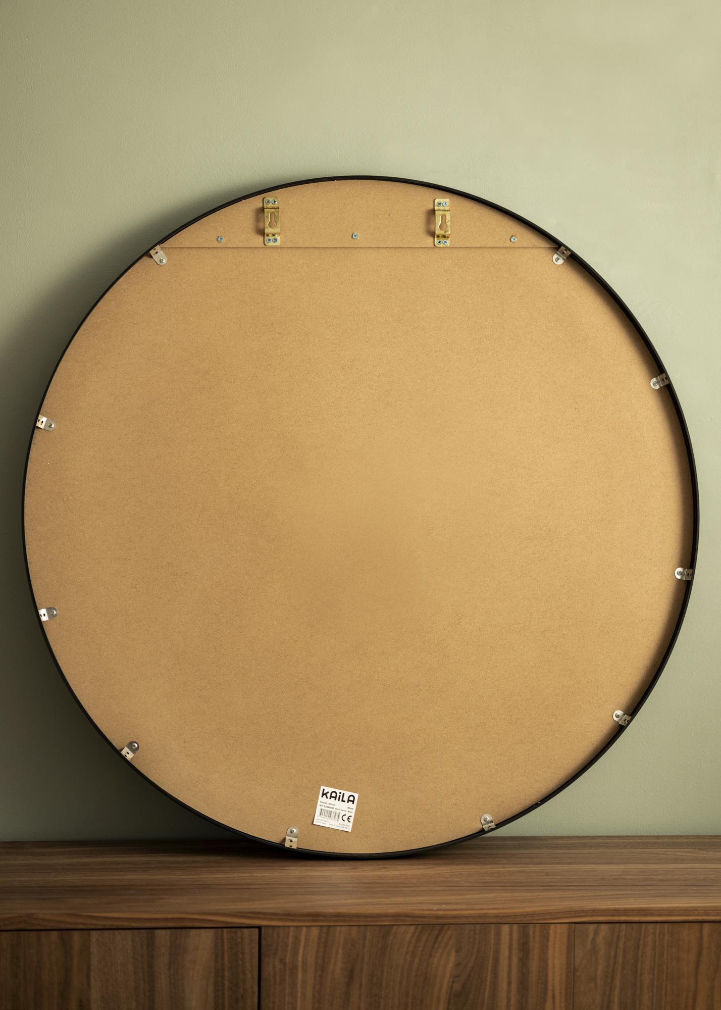 KAILA Kulaté Zrcadlo Edge Černé je kulaté zrcadlo s elegantním tenkým kovovým rámem v matné černé barvě, což mu dodává průmyslový a trendy vzhled. Rám má – v závislosti na velikosti – hloubku mezi 30-40 mm, což umožňuje zrcadlovému sklu vyčnívat kousek od zdi a vytváří úžasný 3D efekt. Hloubka rámu také zajišťuje, že zrcadlo působí pevně, přičemž si zachovává svůj minimalistický vzhled. Perfektní kulaté zrcadlo pro umístění v jakékoli místnosti, kde chcete přidat funkci a elegantní švédský design!