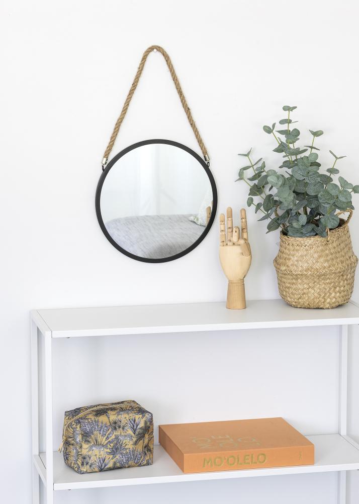Zde je kulaté nástěnné zrcadlo ideální pro ty, kteří mají rádi interiéry inspirované námořní tématikou! Zrcadlo je vyrobeno z kovu a má dekorativní závěs z konopného provazu pro ozdobné zavěšení. Nástěnný držák je k dispozici. Sklo zrcadla je orámováno černým okrajem, což zrcadlu dodává stylovou hloubku. Zrcadlo má průměr 30 cm.