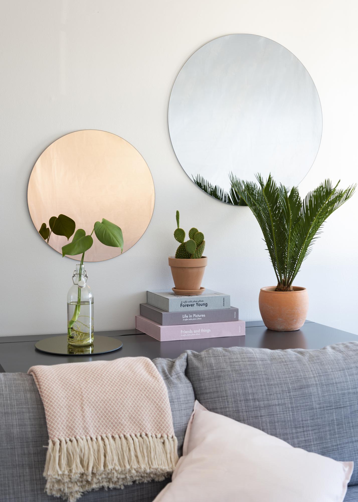 KAILA Kulaté zrcadlo Rose Gold je k dispozici v několika velikostech. Tato varianta má velkorysou velikost 110 cm Ø.