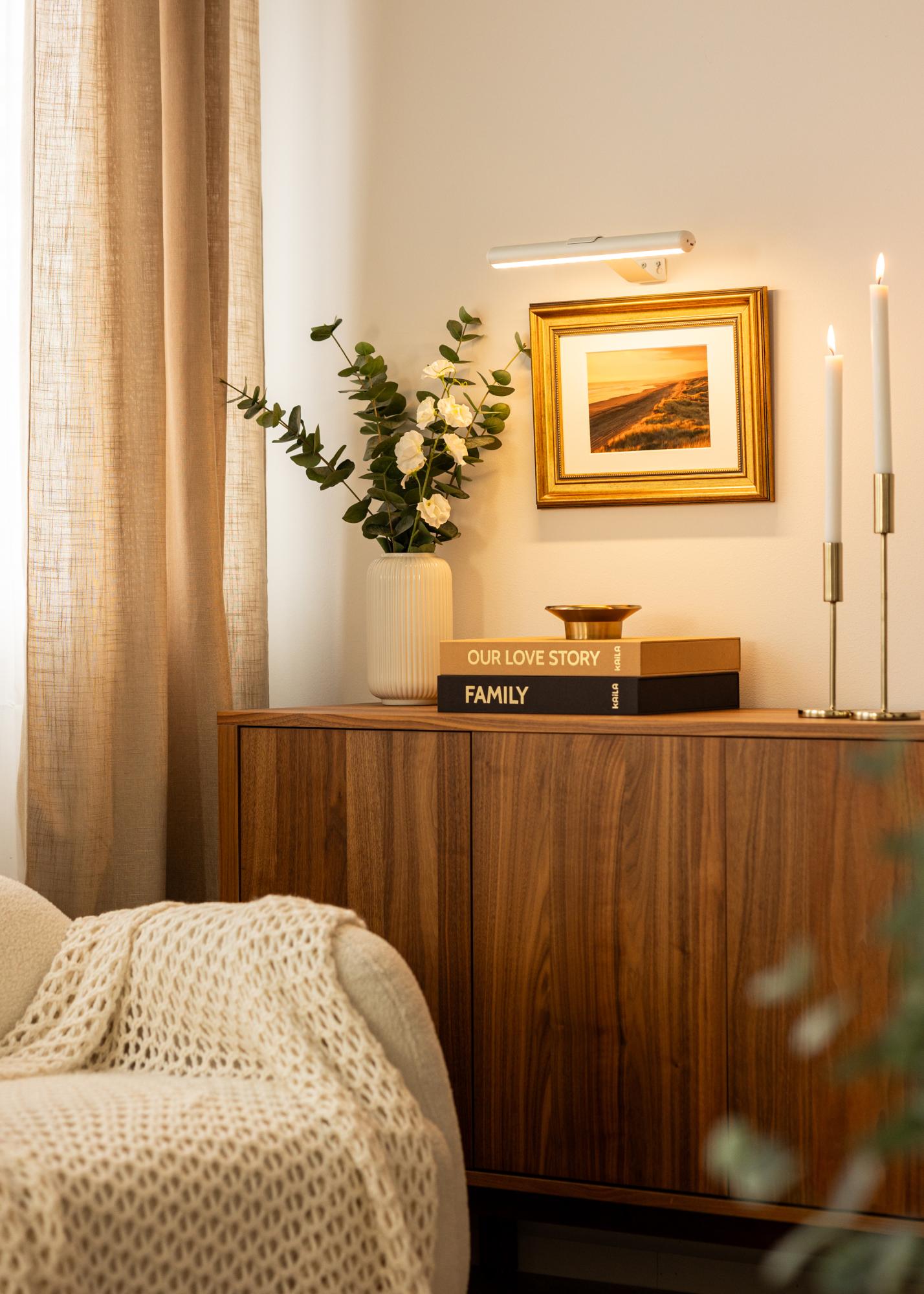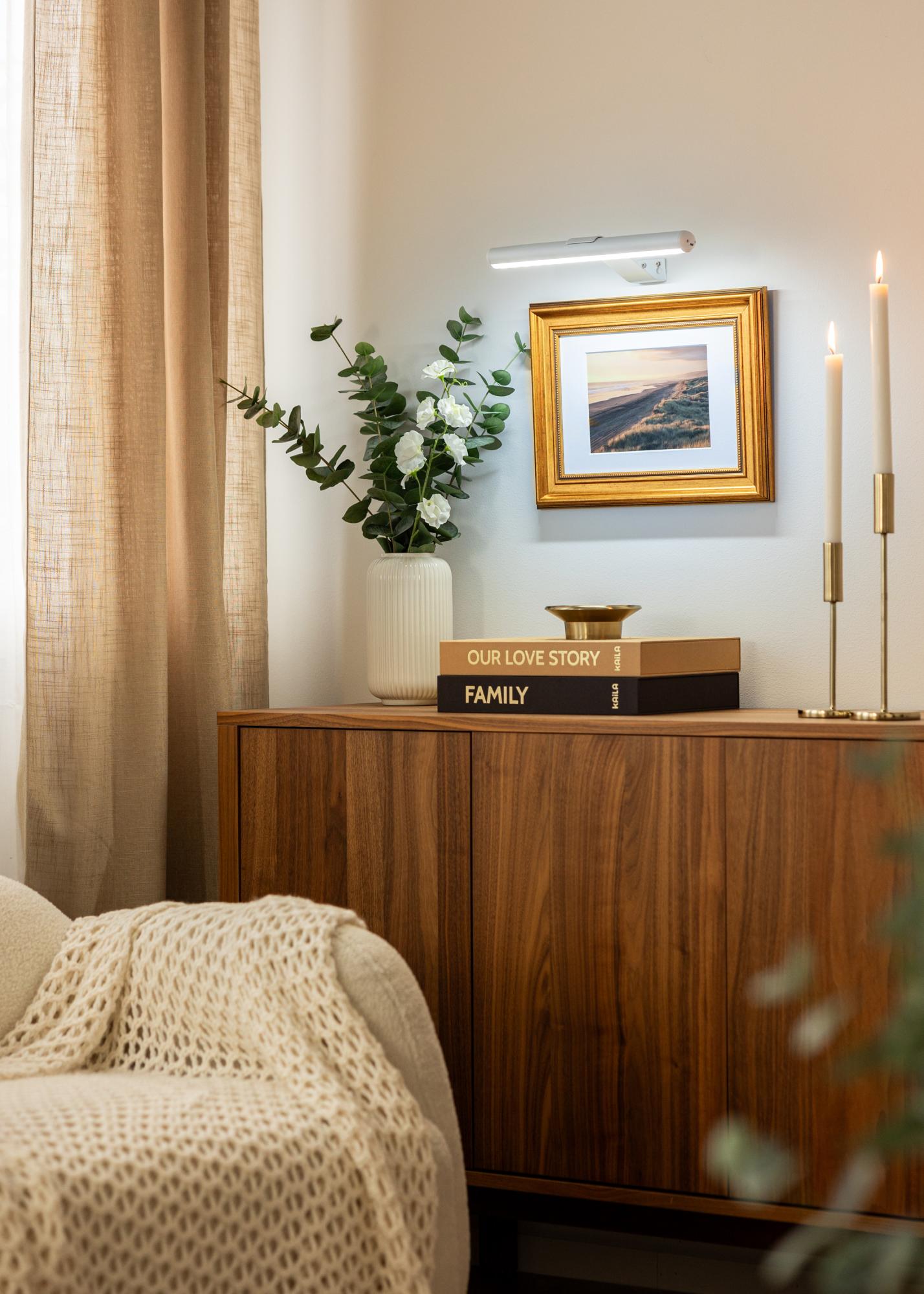 Toto bateriově napájené osvětlení obrazů v bílém provedení nabízí hladké řešení pro osvětlení vašich uměleckých děl bez nutnosti vedení kabelů. Díky bateriovému napájení jej lze umístit na libovolné místo bez nutnosti elektrické zásuvky, což jej činí velmi flexibilním. S hloubkou 15 cm a délkou 33 cm je osvětlení kompaktní a snadno se instaluje, současně může osvětlit umělecká díla o šířce až 60 cm.
