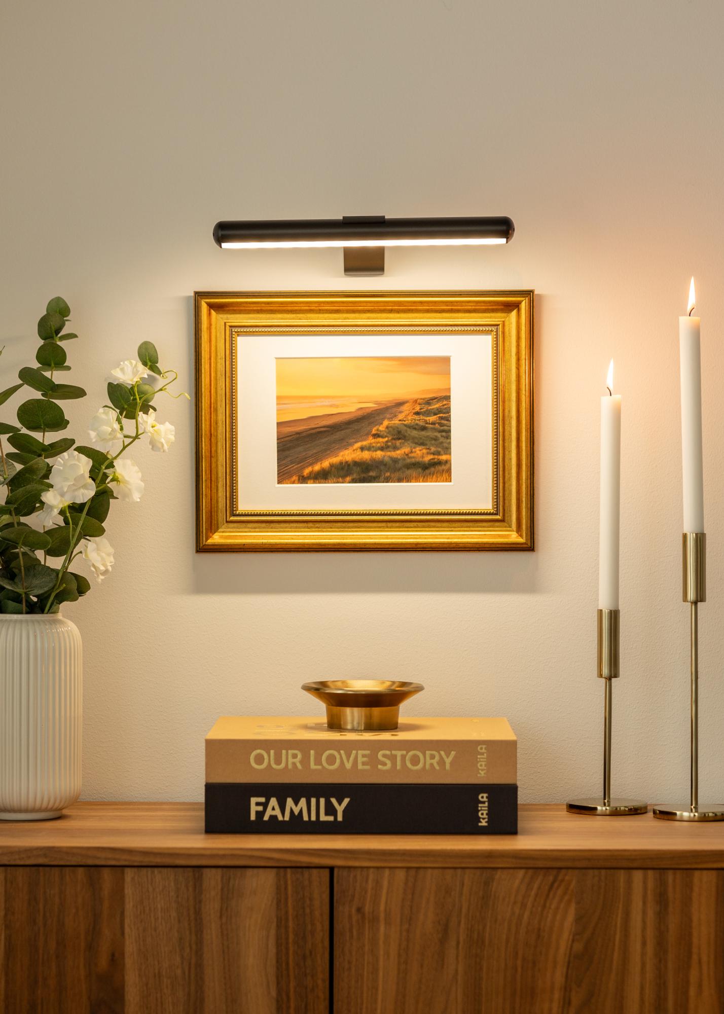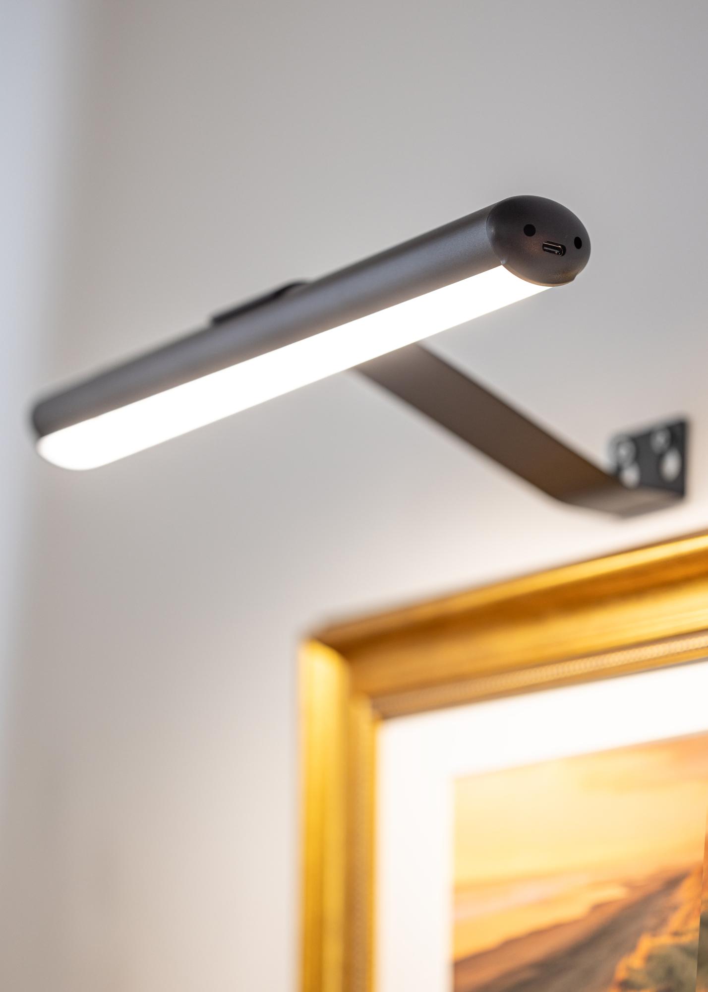 Tato bateriemi poháněná obrazová lampa v černém designu je elegantním a praktickým řešením pro zvýraznění vašich uměleckých děl bez nutnosti použití kabelů. S flexibilní instalací ji lze umístit kdekoli na stěně, což z ní činí ideální volbu pro prostory, kde není zásuvka snadno dostupná. S kompaktní hloubkou 15 cm a délkou 33 cm je vhodná pro osvětlování uměleckých děl s maximální šířkou až 60 cm.