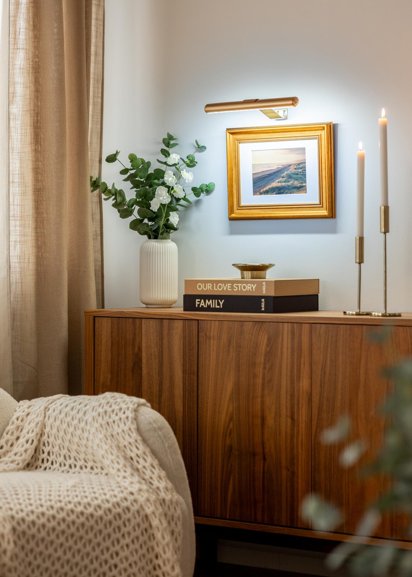 Se svou zlatou barvou a elegantním designem se toto osvětlení obrazů stává nejen praktickým řešením, ale i dekorativním prvkem ve vaší domácnosti. Skvěle se hodí do různých interiérových stylů a jemně a vkusně zdůrazní vaše umělecká díla. Snadné na montáž a praktické při použití, toto osvětlení je výbornou volbou pro zvýraznění vaší umělecké prezentace.