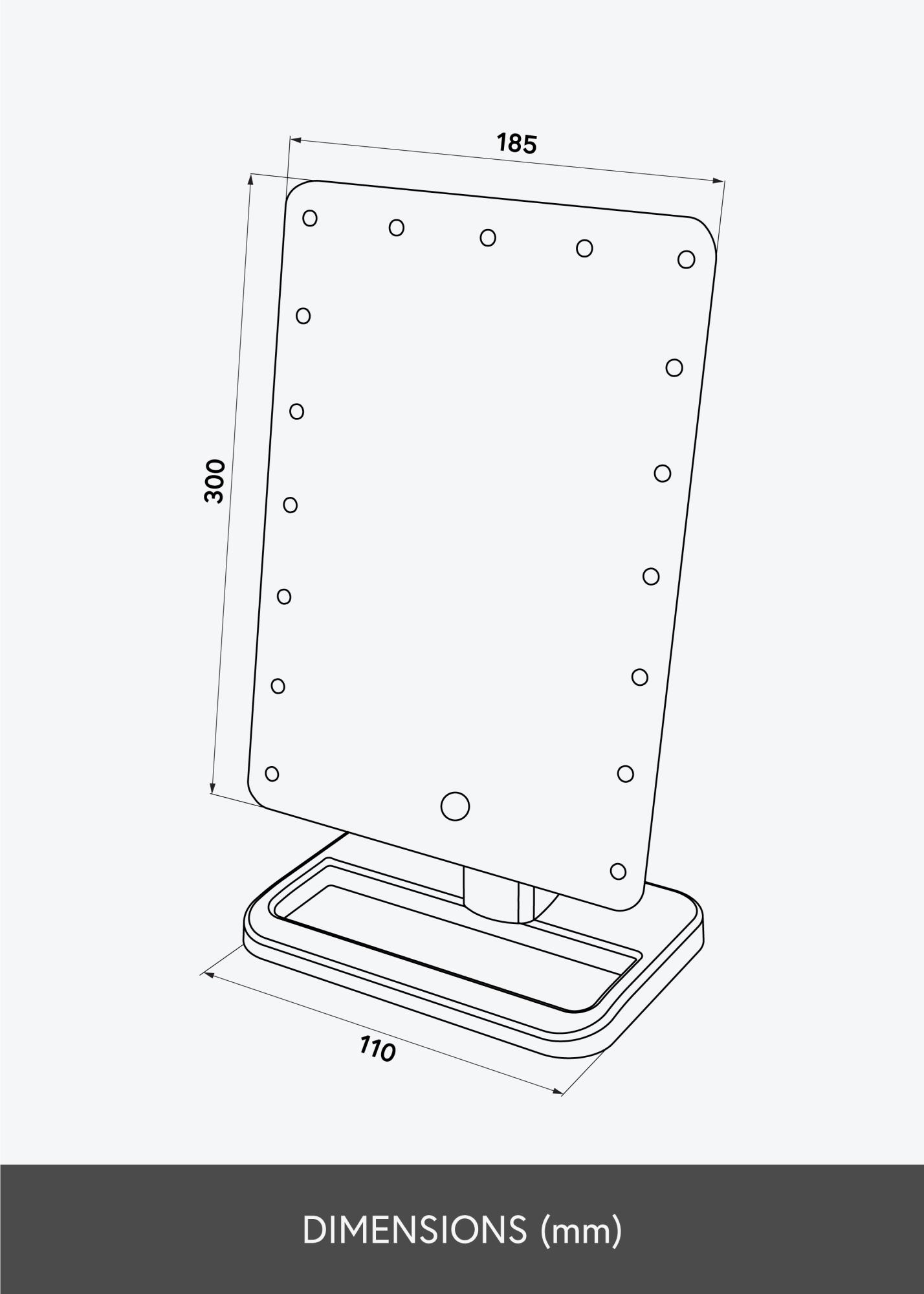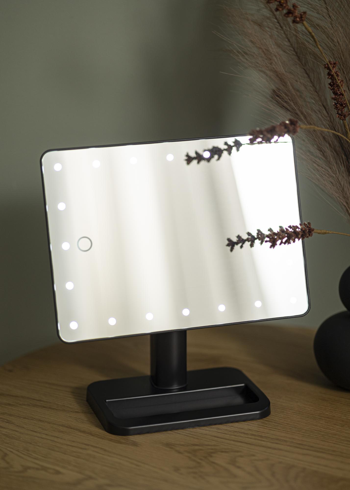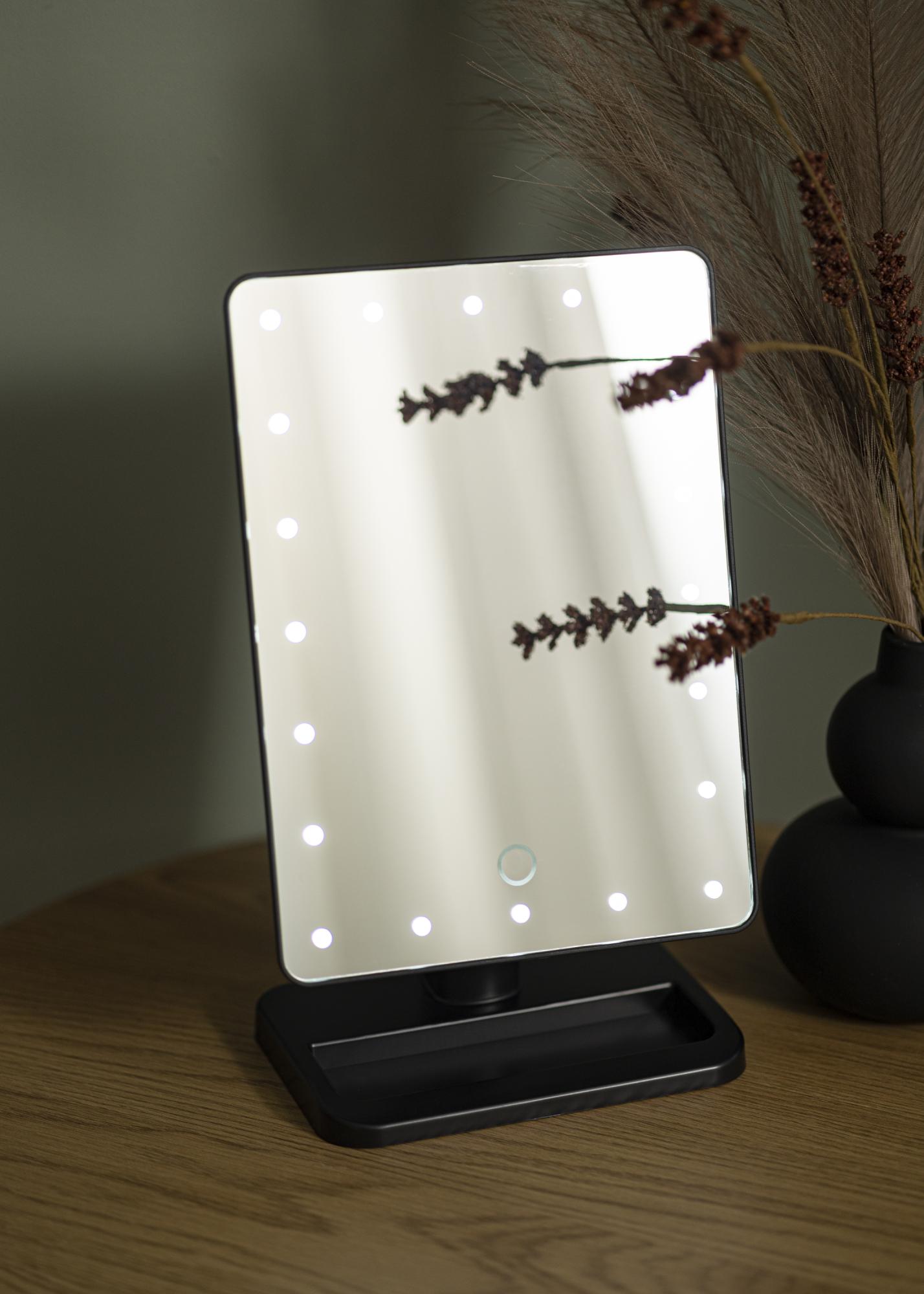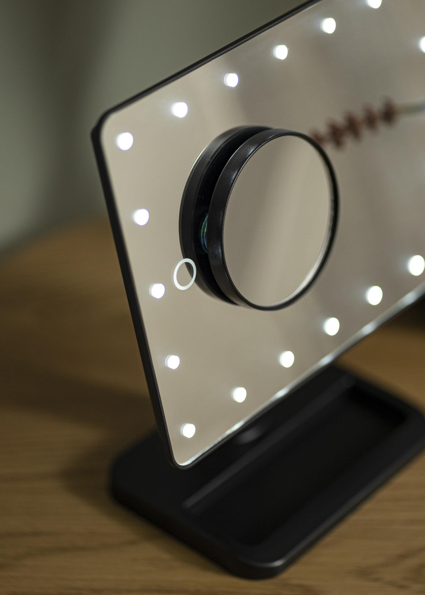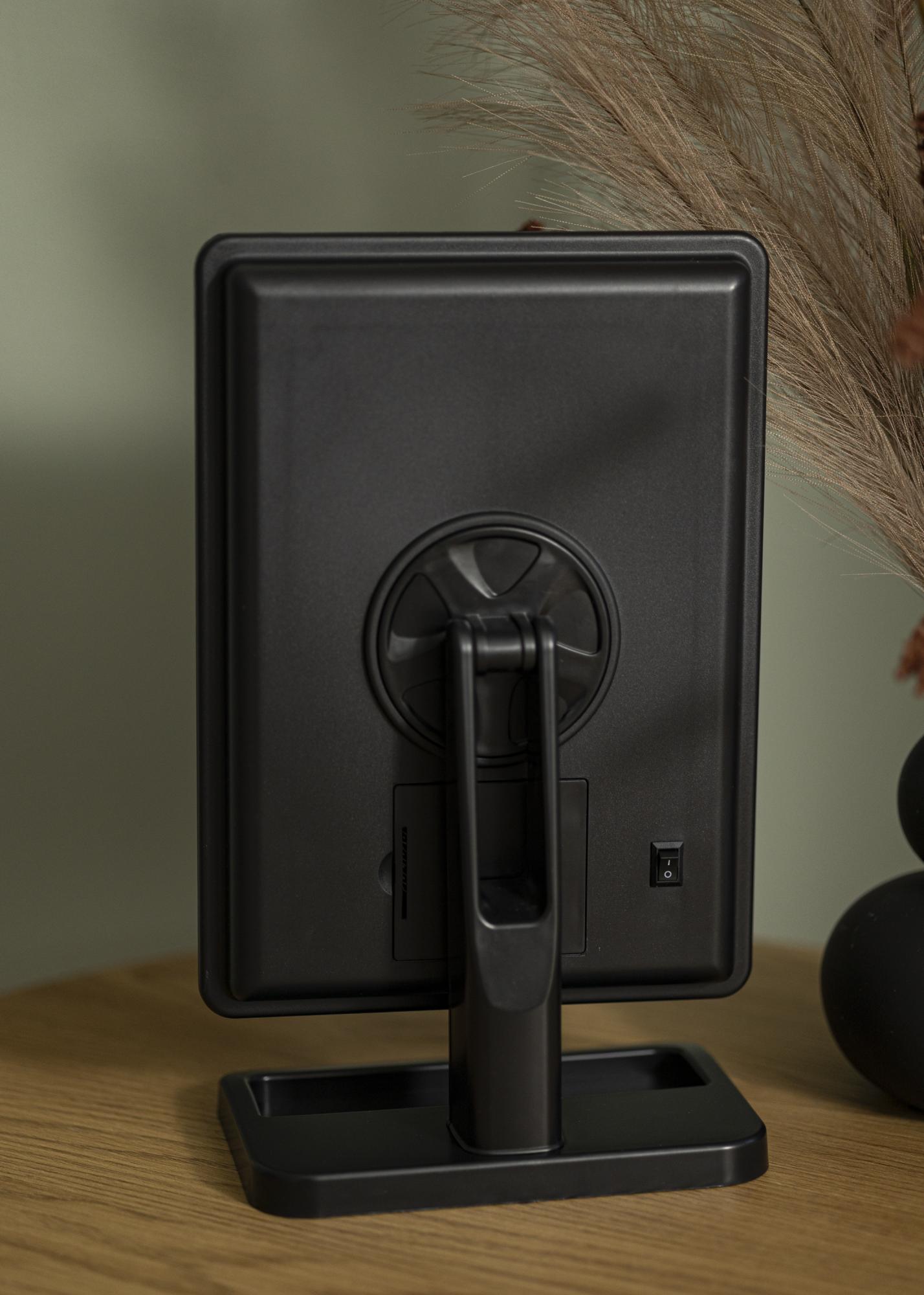 Kompaktní design, pěkný vzhled a rovnoměrné osvětlení – Foot Černá vám nabízí vše, co si přejete ve zrcadle na líčení! Zrcadlová plocha o rozměrech 16,5x25 cm je obklopena LED osvětlením, což je zdroj světla, který je zároveň energeticky úsporný a má dlouhou životnost. Zrcadlo se zapíná stisknutím tlačítka na zadní straně. Můžete nastavit jas studeného bílého světla podržením dotykového tlačítka na přední straně zrcadla po několik sekund.