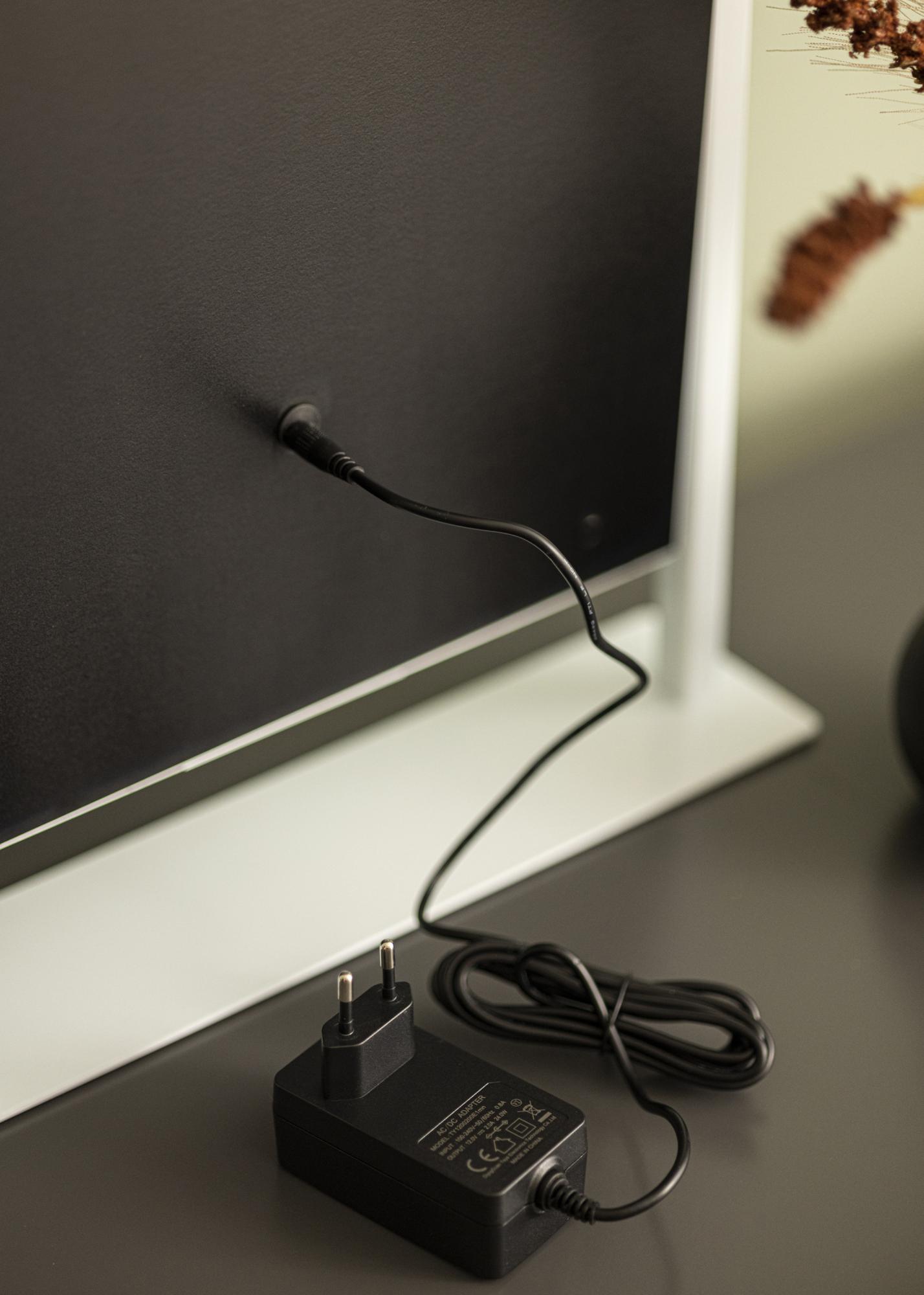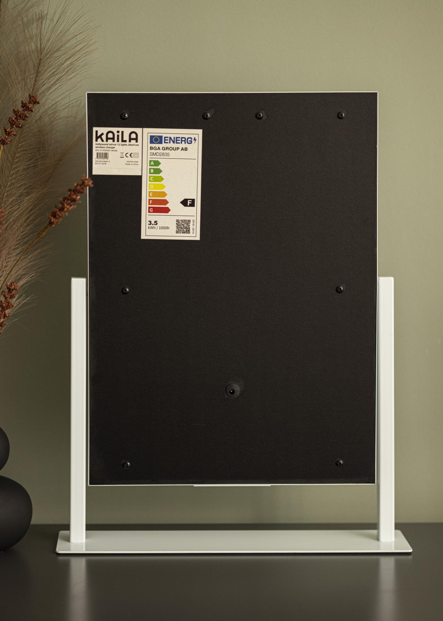 Stojací design v elegantní bílé barvě je velmi stylový, zatímco chytrá konstrukce vám umožňuje naklánět zrcadlovou plochu. Zrcadlo je vybaveno LED osvětlením ve formě 12 lamp, které obklopují zrcadlovou plochu o velikosti 30x41 cm. LED osvětlení je možné stmívat a pro nastavení jasu držte dotykové tlačítko na zrcadle po několik sekund. Elektrické připojení se realizuje pomocí zásuvky.