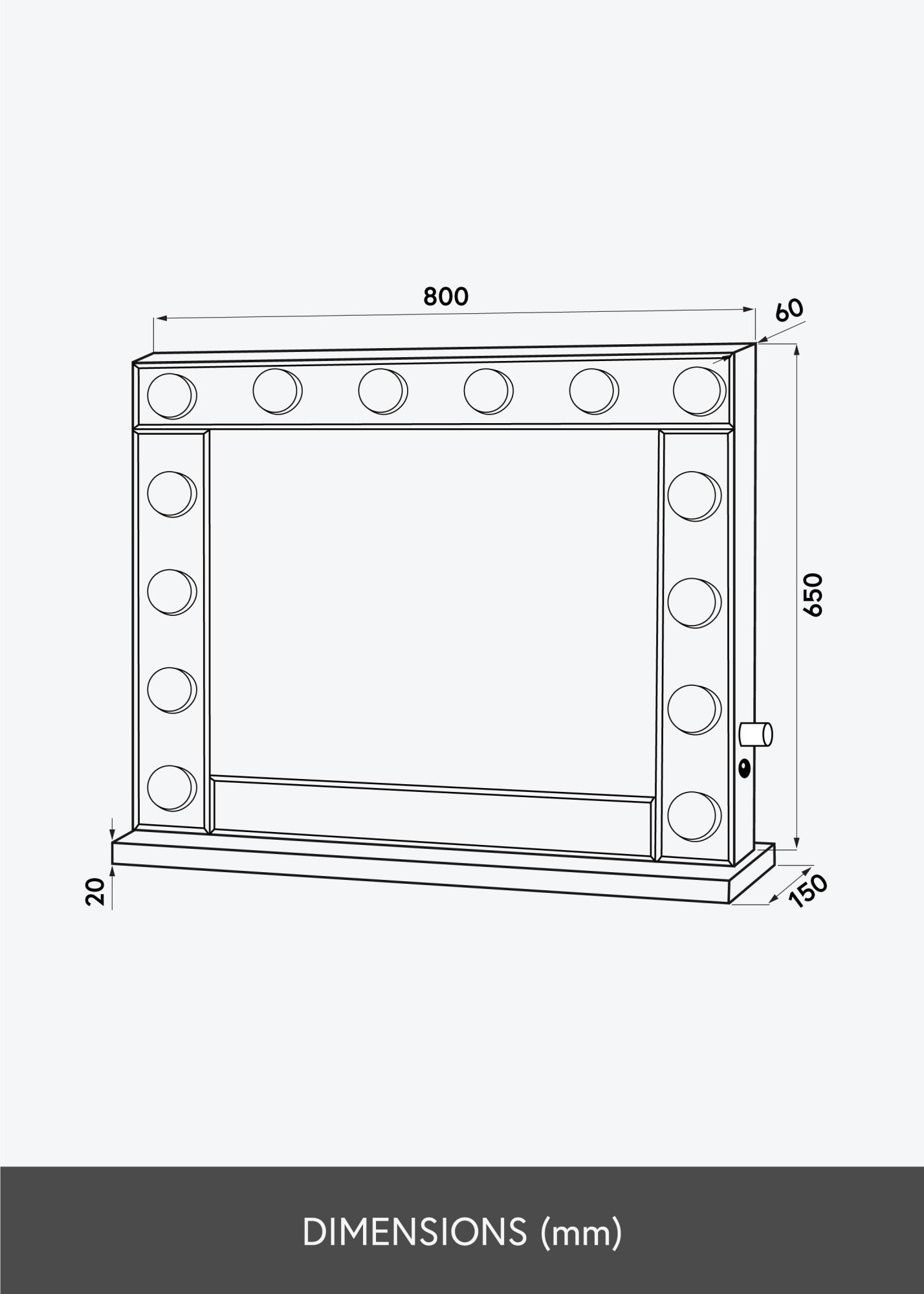 Zrcadlo má velký formát, s velikostí zrcadlové plochy 80x65 cm. Stojan je možné namontovat a demontovat, takže si sami můžete vybrat, zda chcete mít zrcadlo stojící nebo zavěšené na zdi. Elektrické připojení je realizováno zástrčkou.