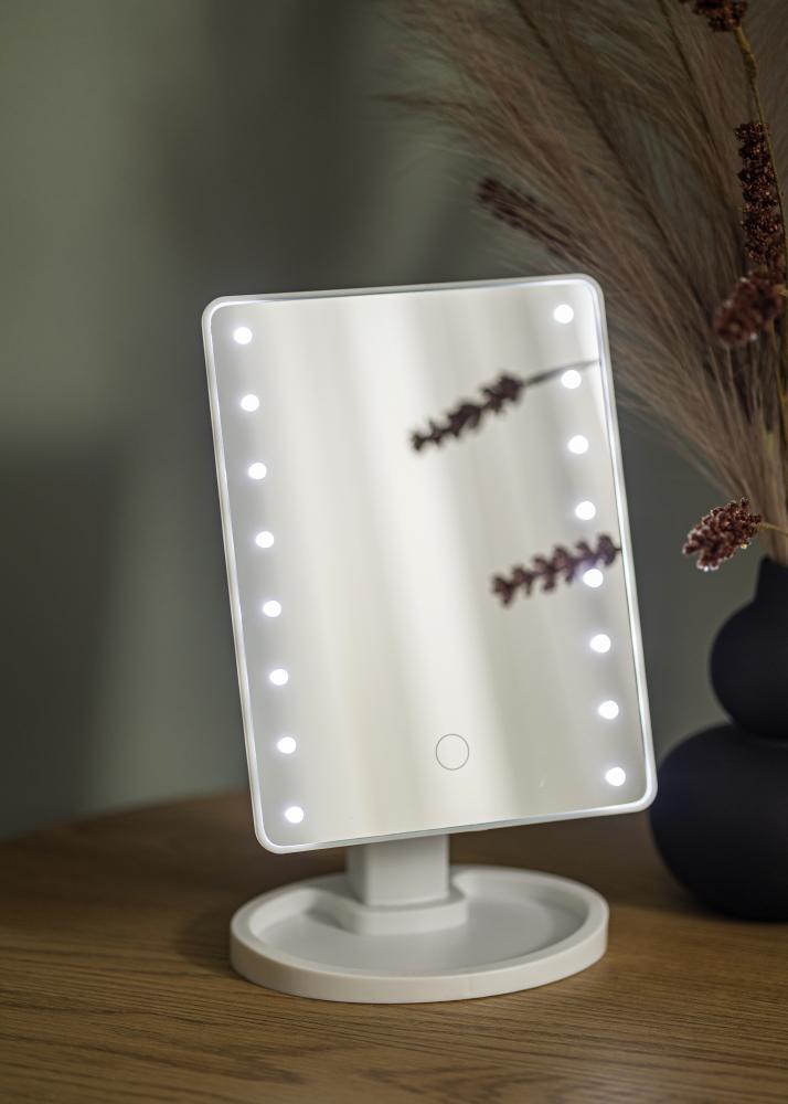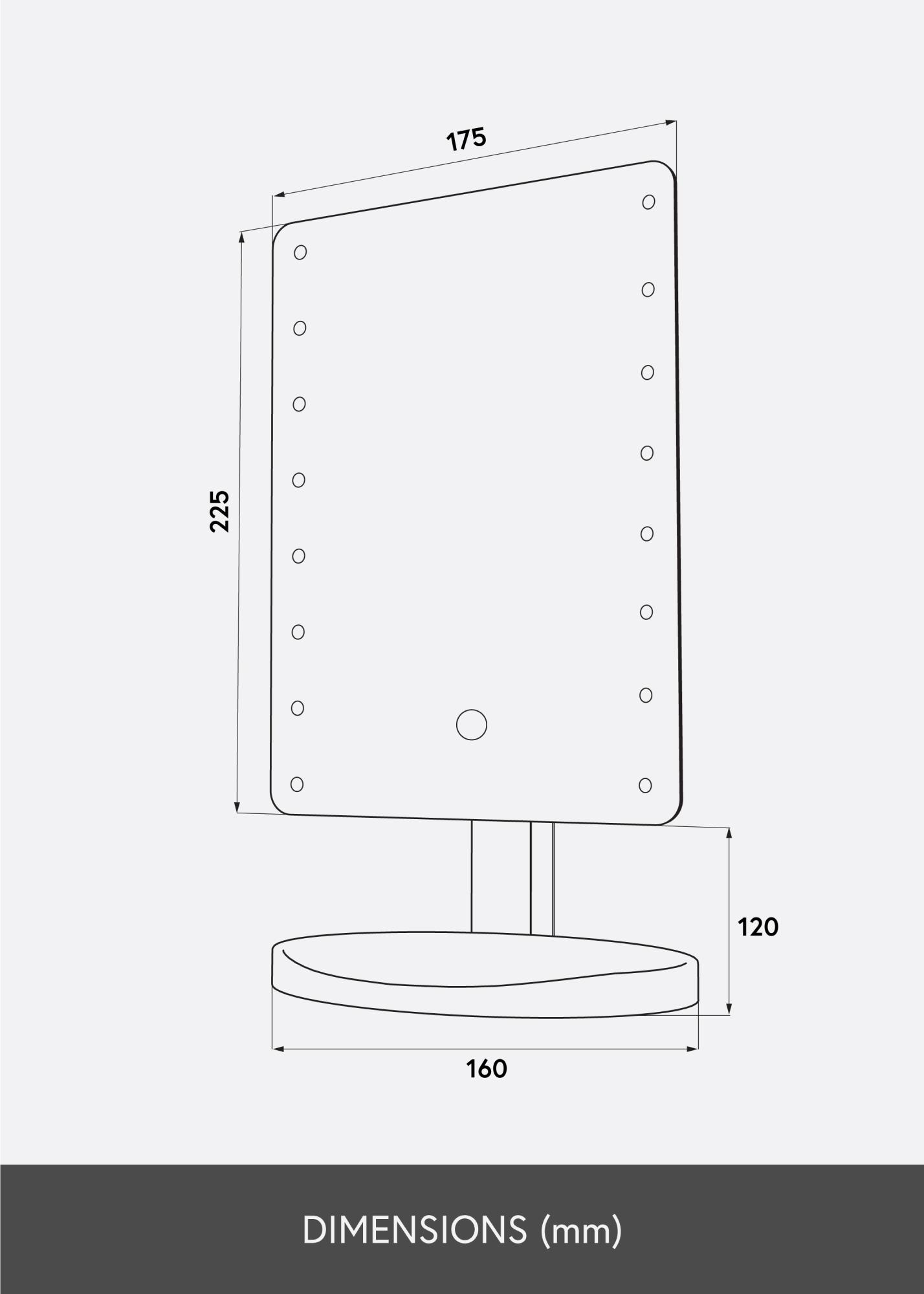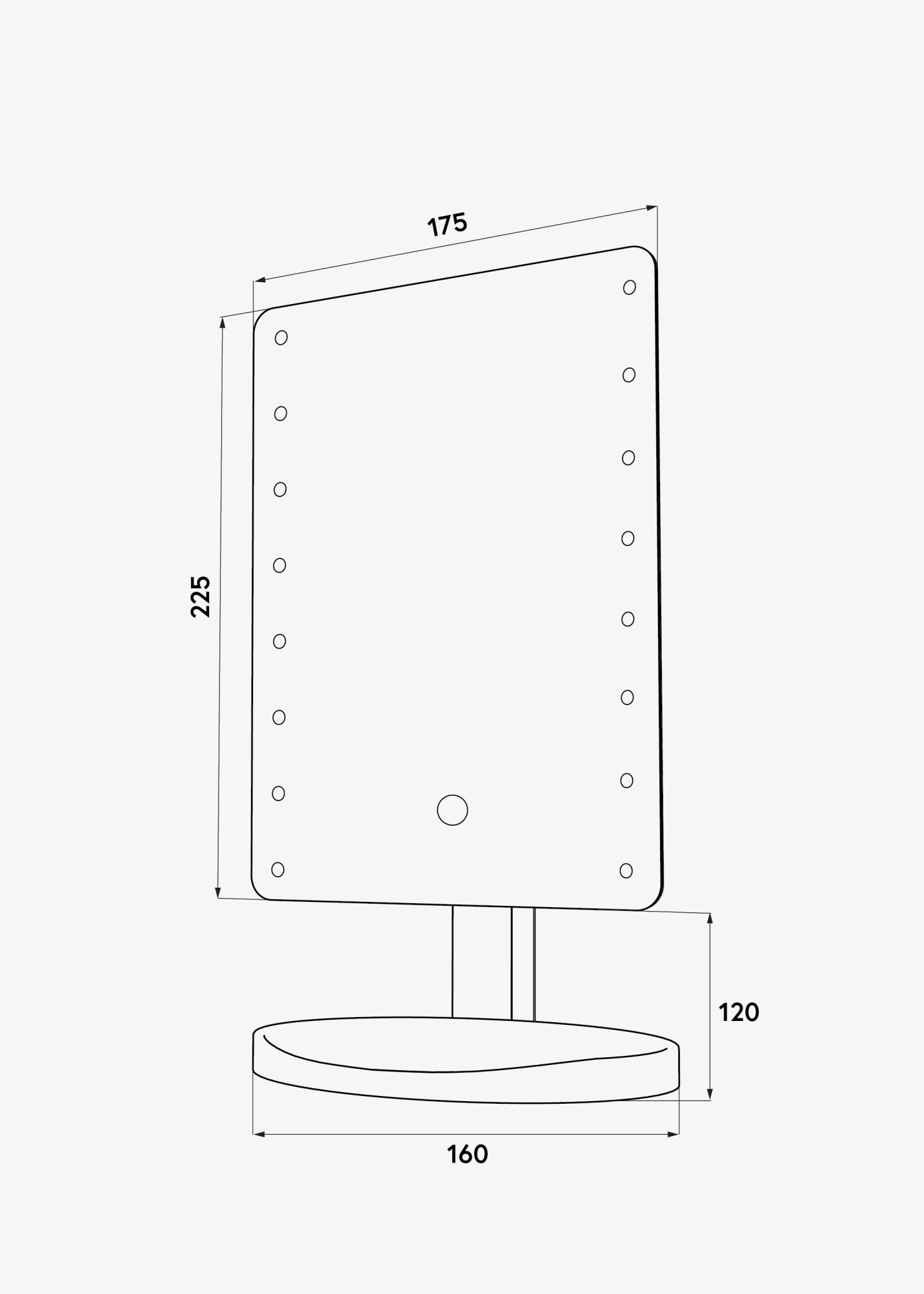 Toto je stylové zrcadlo na líčení, které je ideální používat jak doma, tak na cestách. Je velmi přenosné, s materiálem z lehkého kompozitu a menším formátem se zrcadlovou plochou 17,5x22,5 cm. Zrcadlo lze naklápět a otáčet do vodorovné polohy.