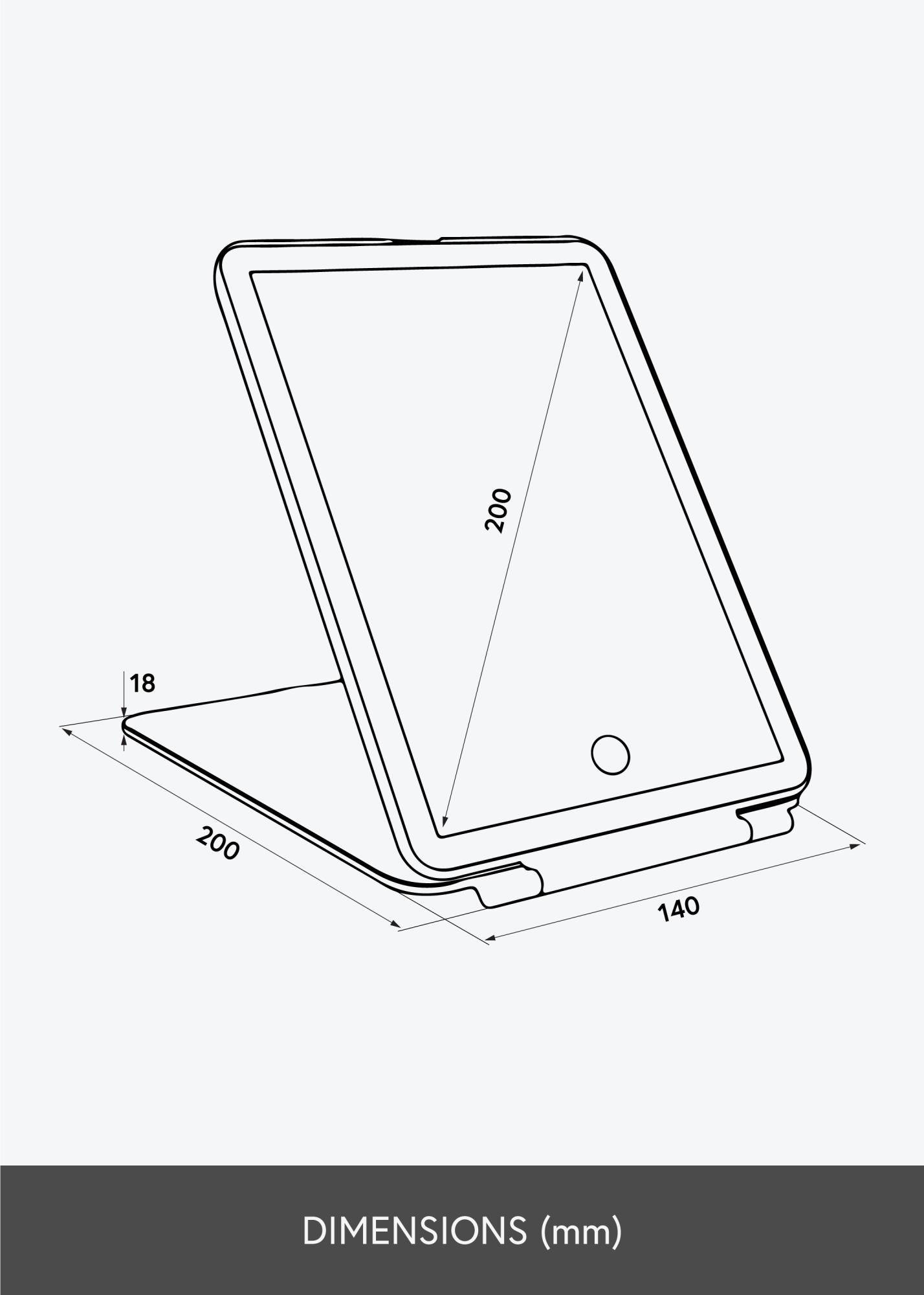 Elegantní, hladké a lehké – toto kosmetické zrcátko má vše, co potřebujete, když jste na cestách. Kompaktní formát, se zrcadlovým povrchem o velikosti 14x20 cm, umožňuje snadné uložení do tašky při všech příležitostech. Kosmetické zrcátko má skládací design, který chrání zrcadlový povrch před prachem, když se nepoužívá, a v otevřené poloze můžete zrcátko naklonit podle potřeby.