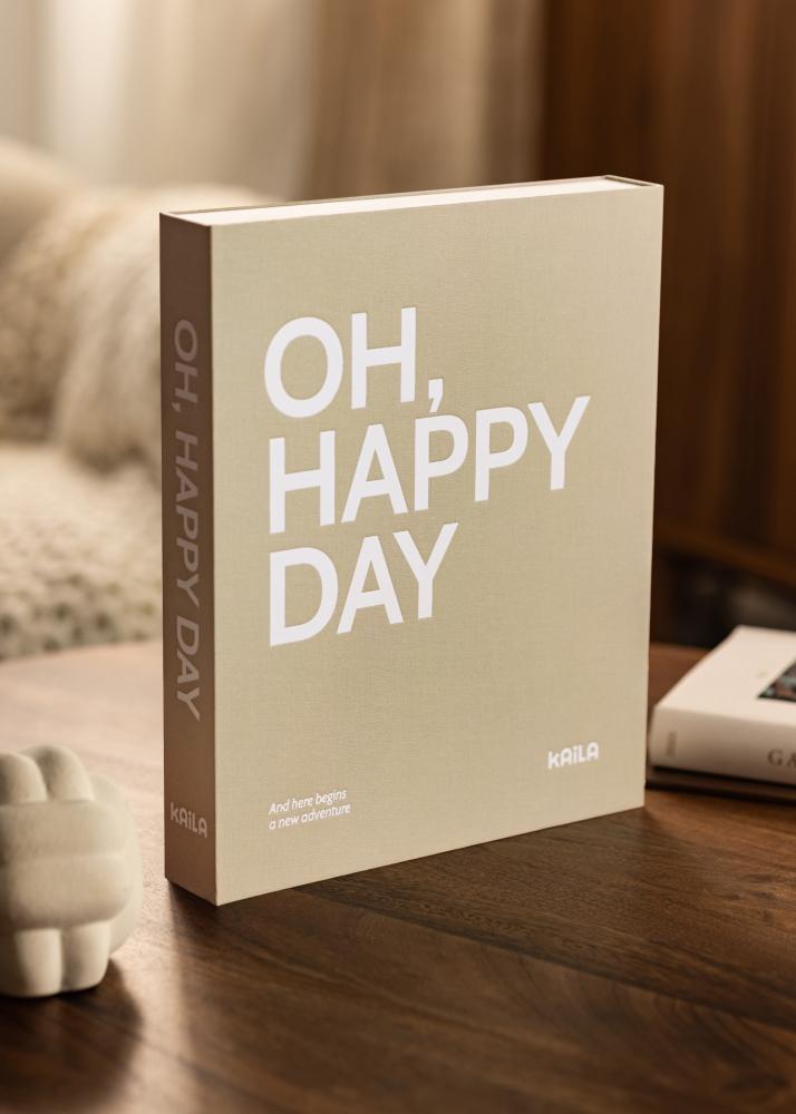 Zde je perfektní fotoalbum pro vaše nejšťastnější vzpomínky od KAILA! Uchovejte je stylově v textilním Coffee Table Photo Albu, které se zároveň stane elegantním dekoračním prvkem vašeho domova. Toto album má na přední straně natištěný titul ”OH, HAPPY DAY” ve velkých bílých písmenech a podtitul ”And here begins a new adventure”.