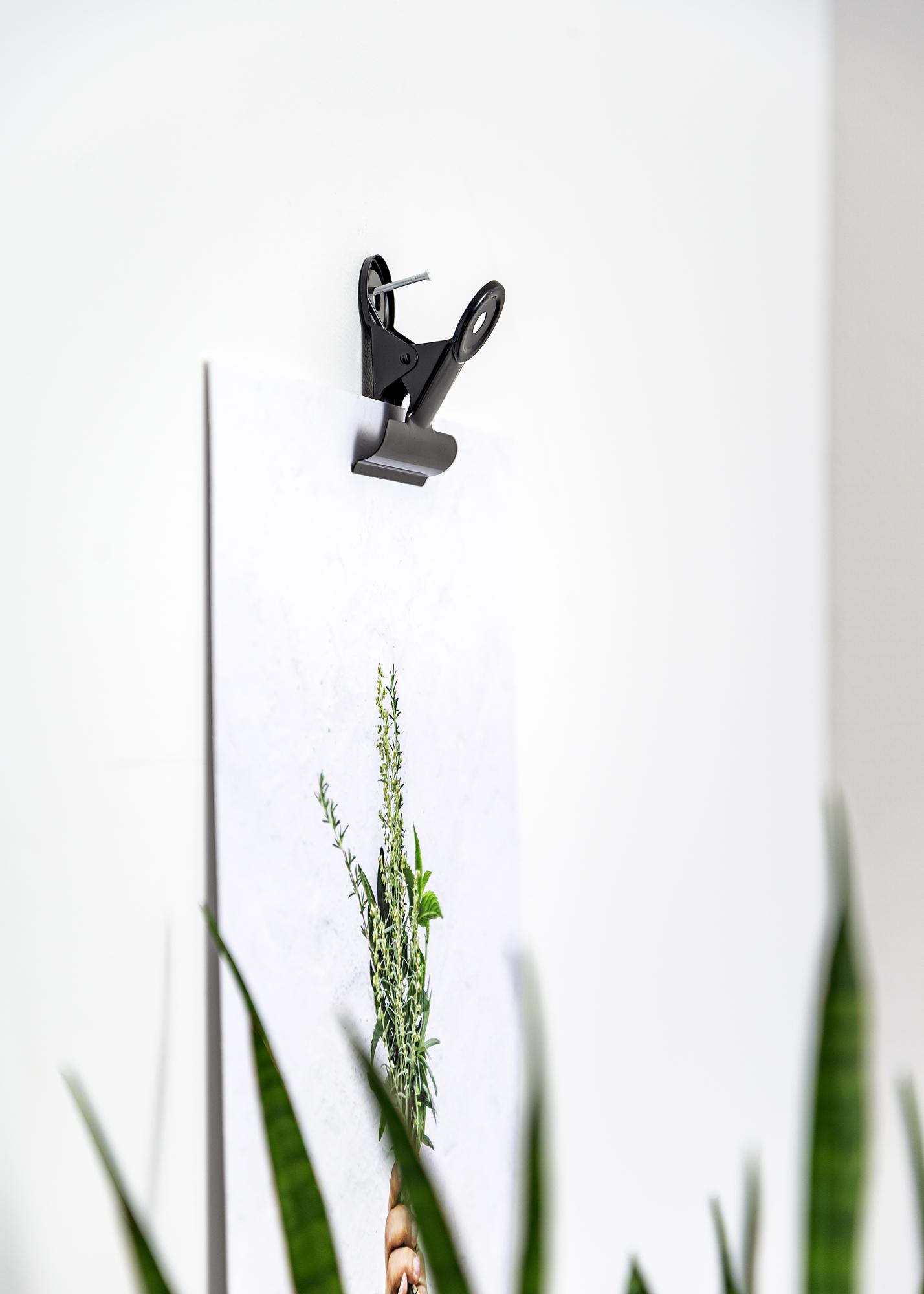 Tato černá kovová spona má elegantní matný povrch a poskytne vašim plakátům a tiskům šik a trendy zavěšení. Otvor spony má pevný úchop, díky kterému můžete připevnit i tenké papíry, zároveň ji lze použít i pro motivy s větší tloušťkou. Pokud máte velký plakát, který chcete pověsit, můžete zvolit použití dvou spon. Design kovové spony je elegantní a dírky v kulatém vršku spony umožňují snadné a pohodlné zavěšení na stěnu pomocí malého hřebíku nebo šroubu.
