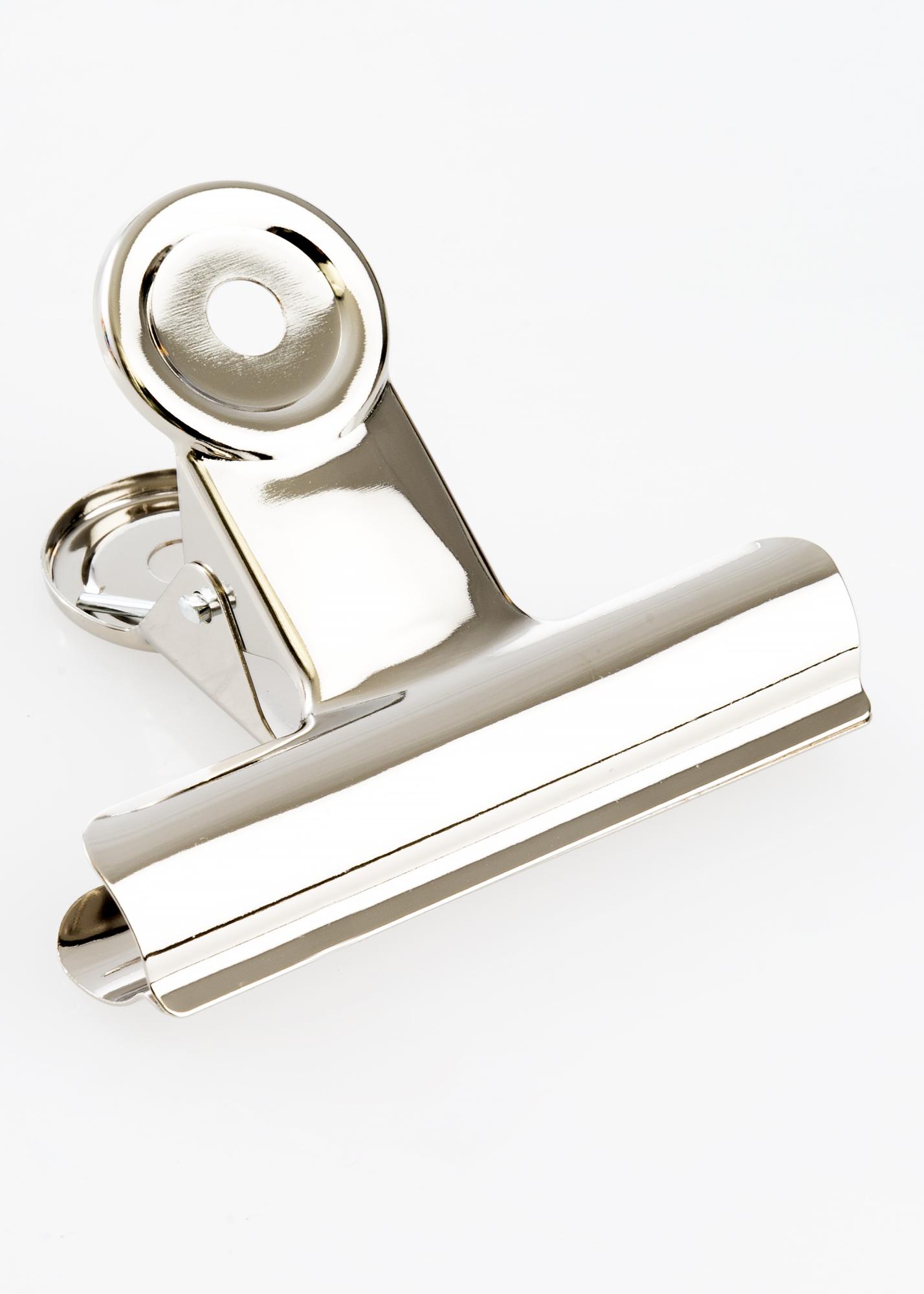 Tento kovový klip má moderní a lesklý stříbrný povrch a je to ideální nástroj pro vytvoření trendového a minimalistického zavěšení plakátů nebo potisků. Flexibilní a pevný otevírací úchop klipu umožňuje zavěšení motivů o různé tloušťce, dokonce i toho nejtenčího papíru. A pokud máte velký plakát, stačí použít dva kovové klipy. Design plakátového klipu je odstrojený a elegantní, a otvory v kulaté horní části klipu umožňují snadnou a rychlou montáž na zeď – vše, co potřebujete, je malý hřebík nebo šroub.