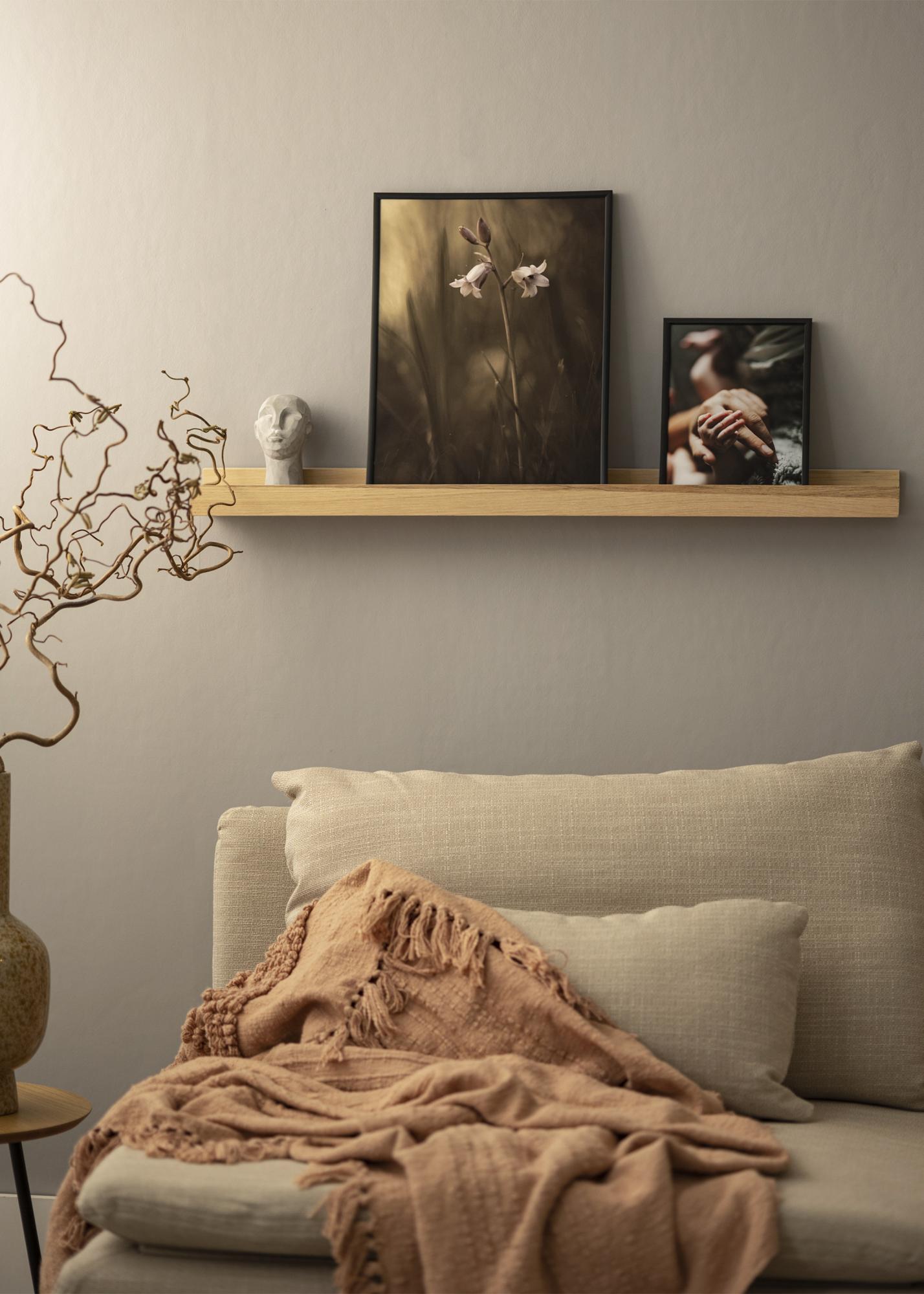 S praktickou poličkou na obrazy vystavíte své obrazy elegantním způsobem a navíc získáte vynikající možnosti, jak obměnit svou nástěnnou výzdobu. Tato polička na obrazy je vyrobena z masivního dubu a má čistý design s jednoduchými, rovnými liniemi. Samotná polička má frézovanou drážku, která poskytuje podporu vašim obrazům a umožňuje jim stát v pěkném úhlu opřená o stěnu. Polička je k dispozici v několika různých délkách, přičemž tato varianta má délku 90 cm. Polička na obrazy má také předvrtané otvory a navíc obsahuje vhodné šrouby a hmoždinky, aby byla montáž ještě jednodušší.