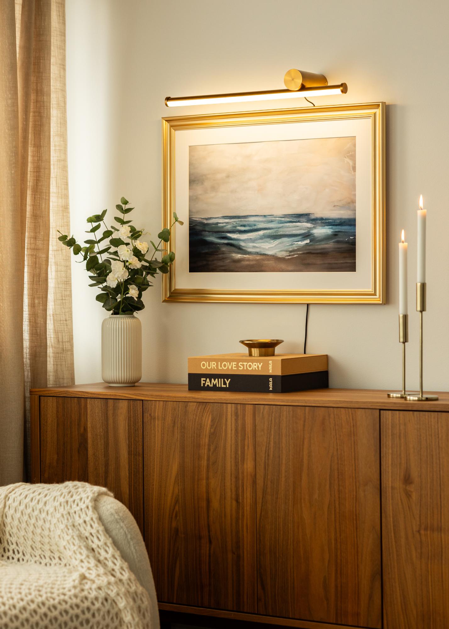 Světelným zdrojem je LED osvětlení, které poskytuje teplé bílé světlo s barevnou teplotou 3000 K. To znamená, že světlo je příjemné a vytváří přívětivou atmosféru, aniž by bylo příliš silné. Jas je 780 lumenů, což poskytuje dostatečně silné světlo k zvýraznění vašich obrazů, aniž by zahlcovalo prostor. Světlo se rovnoměrně rozptyluje po povrchu, což umožňuje, aby se všechny detaily uměleckého díla objevily přirozeným způsobem.