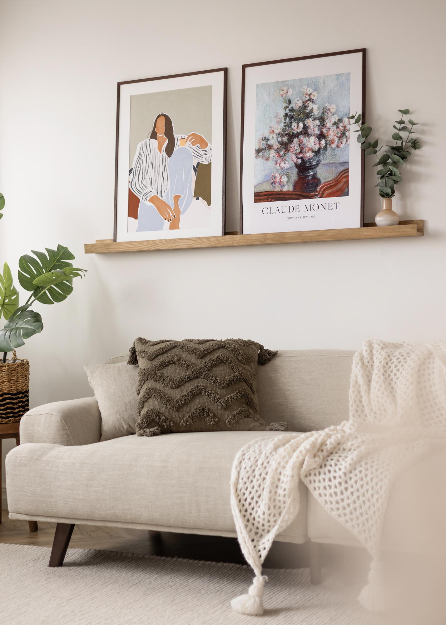 Praktickou poličkou na obrazy vystavíte své obrazy elegantním způsobem a navíc získáte vynikající příležitosti k obměně nástěnného umění. Tato polička na obrazy je vyrobena z masivního dubu a má čistý design s jednoduchými, rovnými liniemi. Samotná polička má vyfrézovaný zářez, který poskytuje podporu vašim obrazům a umožňuje, aby měly pěkný úhel, kdy se opírají o stěnu. Polička na obrazy je k dispozici v několika různých délkách, přičemž tato varianta má délku 140 cm. Polička na obrazy má také předvrtané otvory a pro ještě snadnější montáž jsou dodávány vhodné šrouby a hmoždinky.