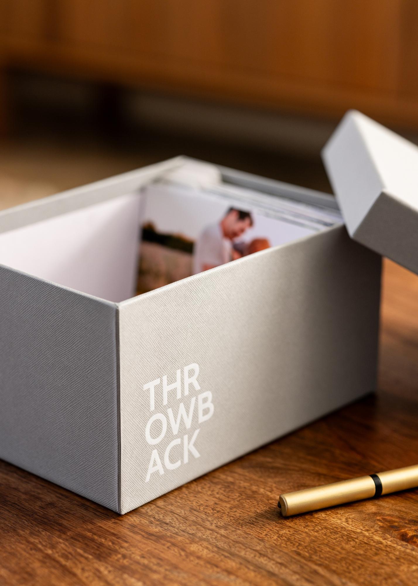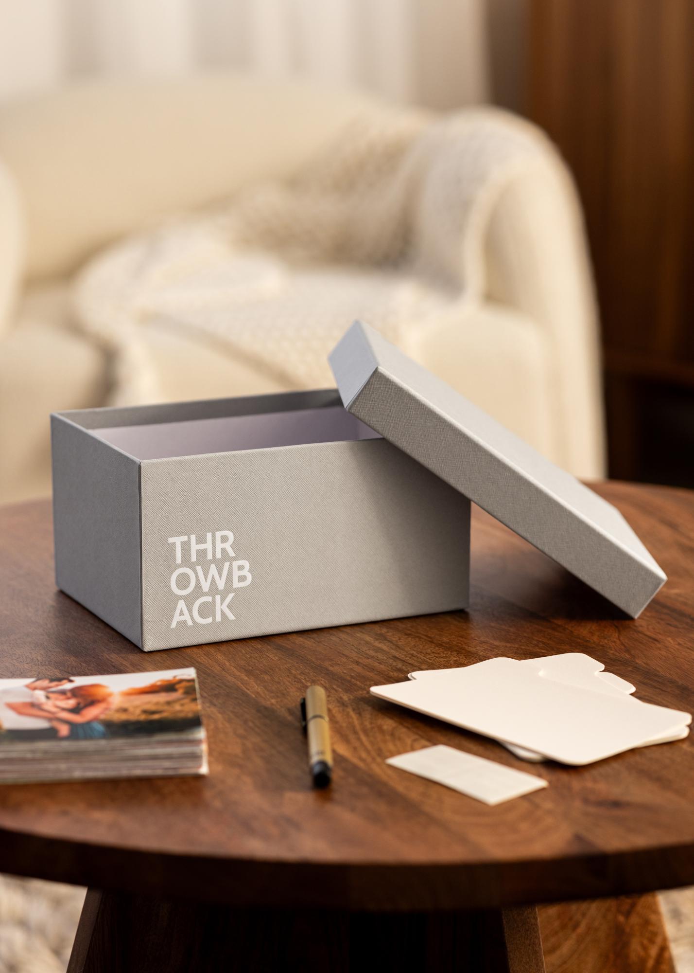 KAILA Throwback Photo Box je stylová a praktická fotobox v elegantním šedém odstínu. Pojme až 700 fotografií o velikosti 10x15 cm a je ideální pro organizaci a uchovávání vašich oblíbených vzpomínek. Dekorativní a funkční řešení pro vás, kteří chcete mít své fotografie uspořádané pěkným způsobem.