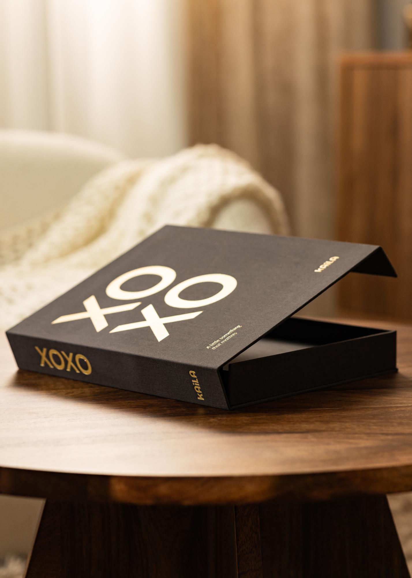 Toto stylové fotoalbum je navrženo jako moderní Coffee Table Book a z tohoto důvodu je také nazýváno Coffee Table Photo Album. Obal je elegantně potažený černou textilií a na přední straně a hřbetu alba je zlatý tisk se známým pozdravem „XOXO“, který symbolizuje polibky a objetí. Tento módní titul je doplněn také podtitulem, který zní „A little something that matters“ a je vytištěn v levém dolním rohu alba. Jedná se o velmi elegantní fotoalbum s odlišným a hravým designem, který zaručeně vyčnívá z davu.