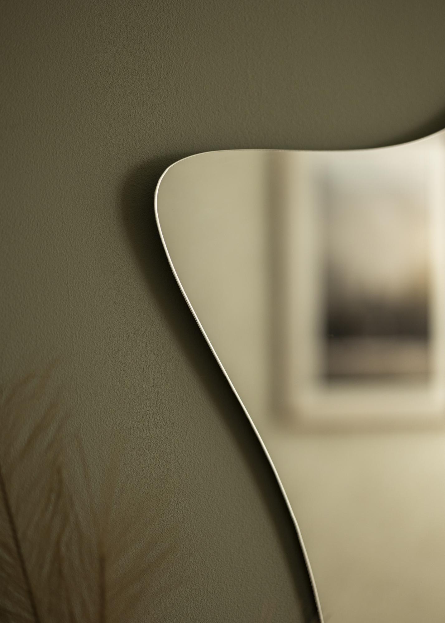 Moderní minimalismus a tvar inspirovaný přírodou – toto nástěnné zrcadlo vám nabízí to nejlepší z obou světů! Unikátní tvar připomíná kvetoucí sasanky, zatímco design bez rámu a 4 mm tenké zrcadlové sklo dodávají zrcadlu elegantní a moderní vzhled.
