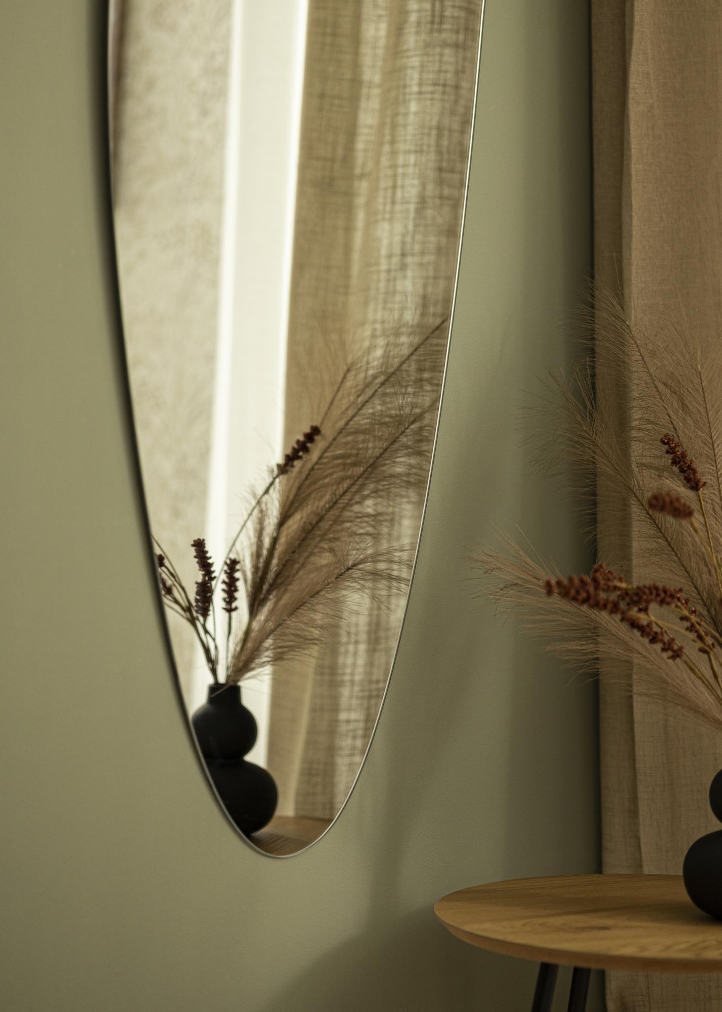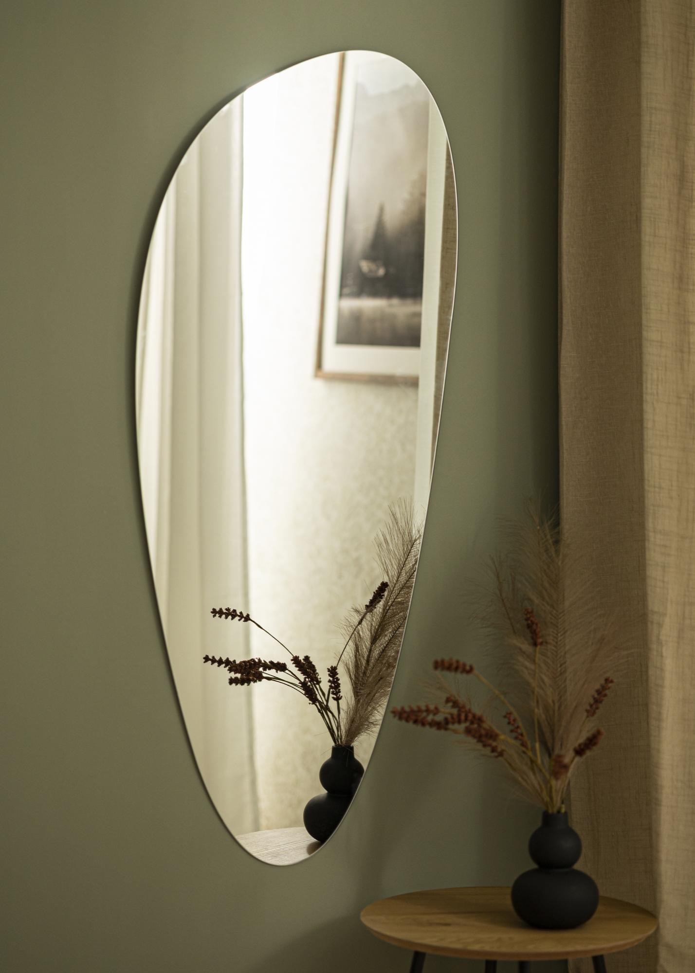 Toto nástěnné zrcadlo je minimalismus v jeho nejlepší podobě – s designem bez rámu a asymetrickým, podlouhlým tvarem. Tenkost zrcadlového skla, pouze 4 mm, ještě více posiluje čistý minimalistický pocit.