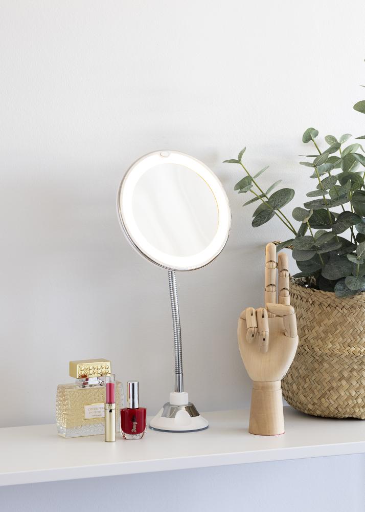 Toto je klasické a elegantní koupelnové zrcadlo s integrovaným LED osvětlením od švédské značky KAILA. Toto zrcadlo je skutečně ideální pro vidění všech detailů, protože má zvětšující zrcadlové sklo s 5x zoomem, které poskytuje ostrý detailní pohled. LED osvětlení poskytuje teplé bílé světlo o teplotě 3000K kolem zrcadlové plochy, která má průměr 17 cm.