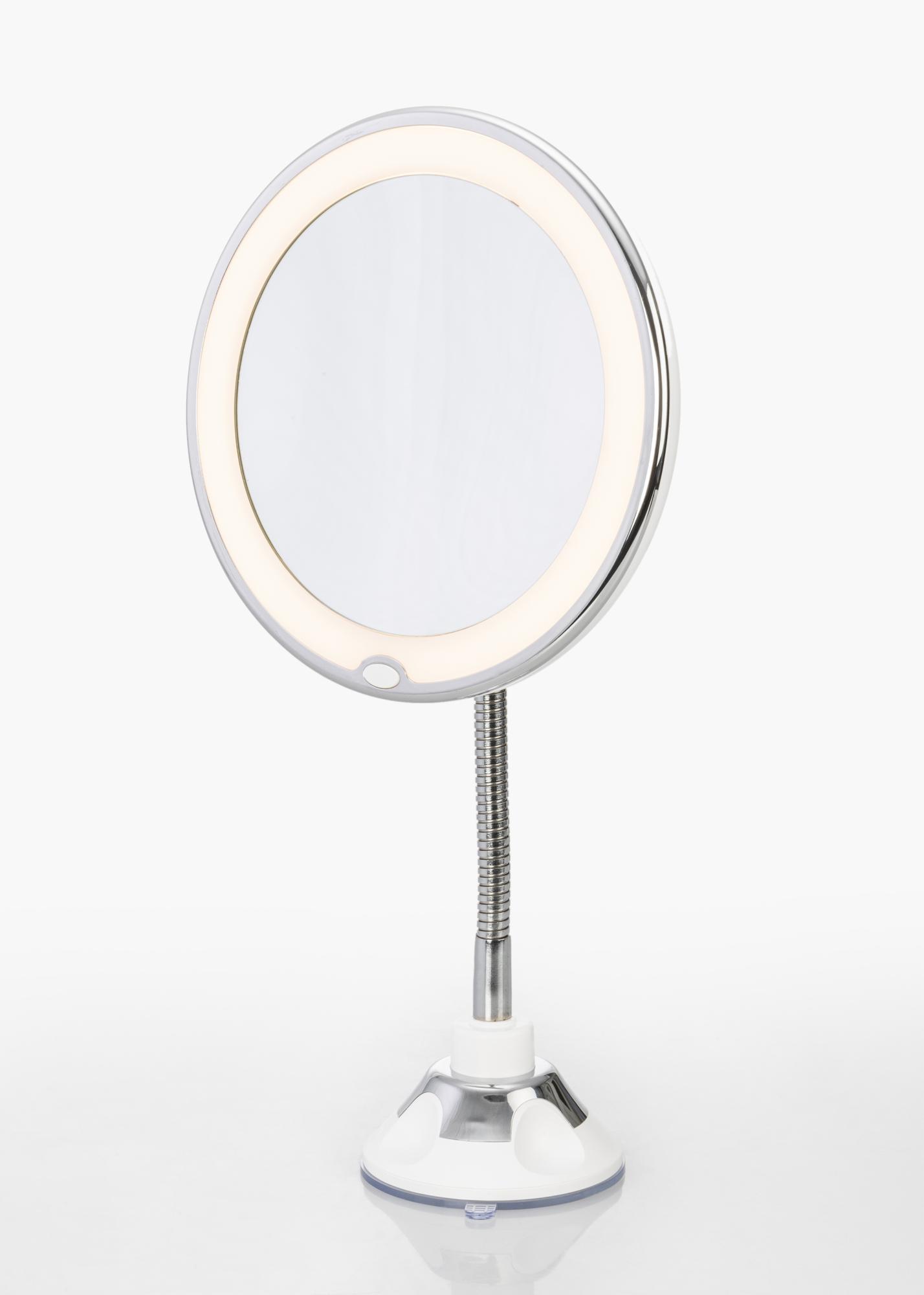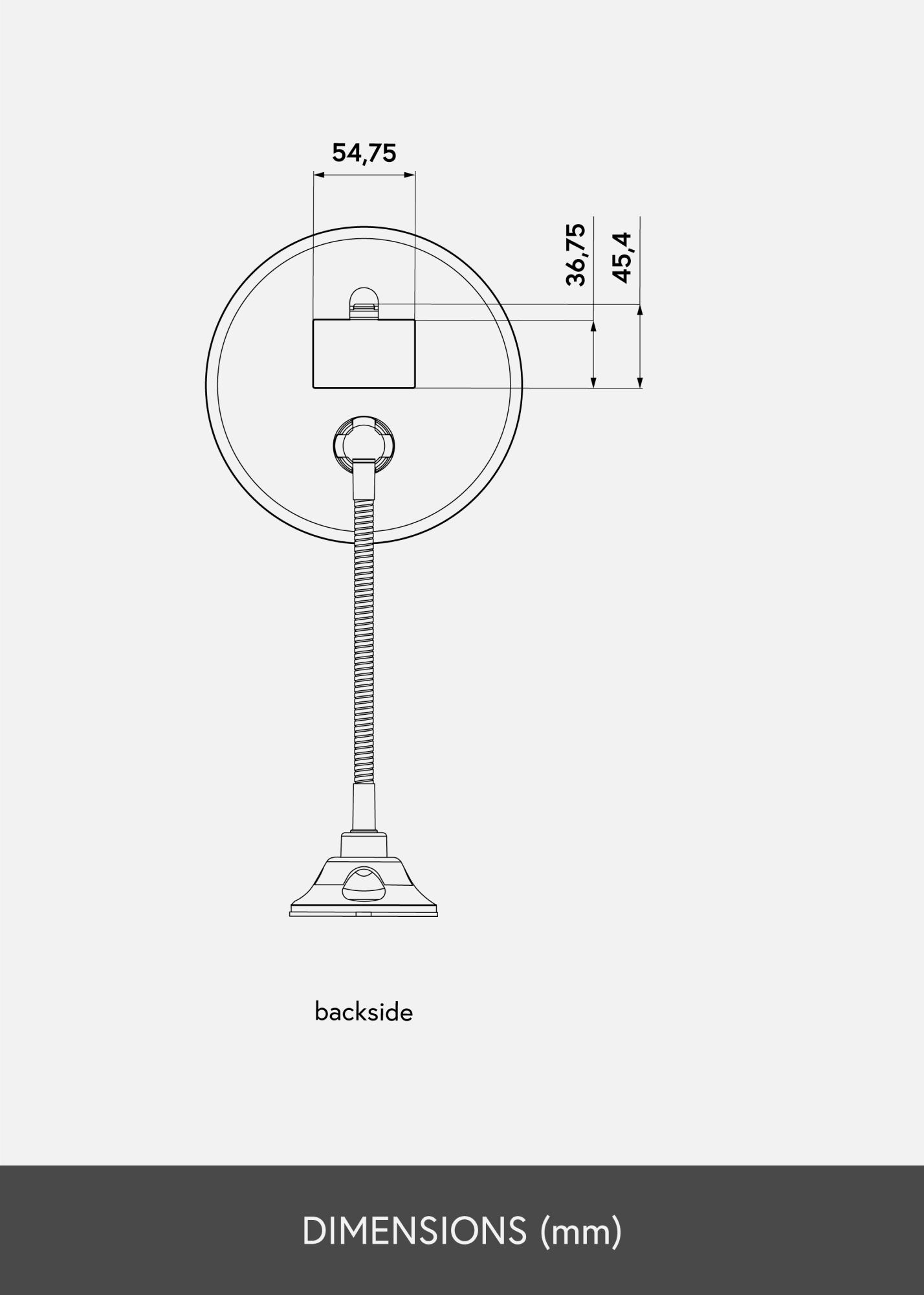 Podstavec zrcadla je pohyblivý, což znamená, že můžete zrcadlo naklonit do požadovaného úhlu. Zrcadlo je schváleno pro použití v koupelně. Zrcadlo je upevněno pomocí přiložené přísavky na zeď, obklad nebo stůl. Přísavka je zamykatelná a zajišťuje stabilní přichycení zrcadla. Dodává se nesmontované.