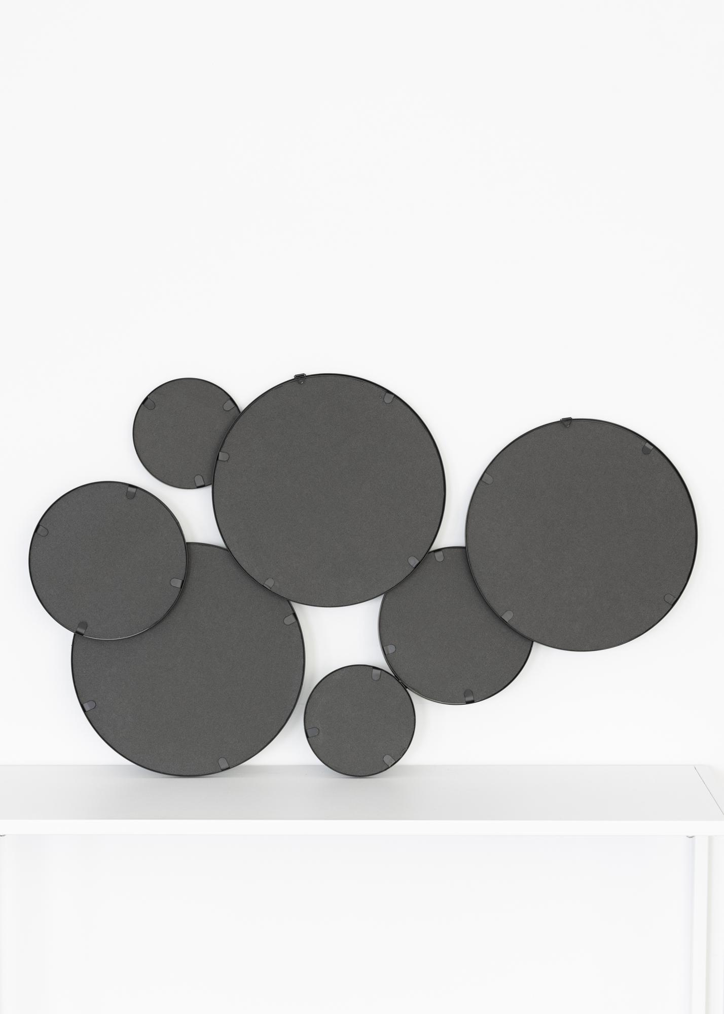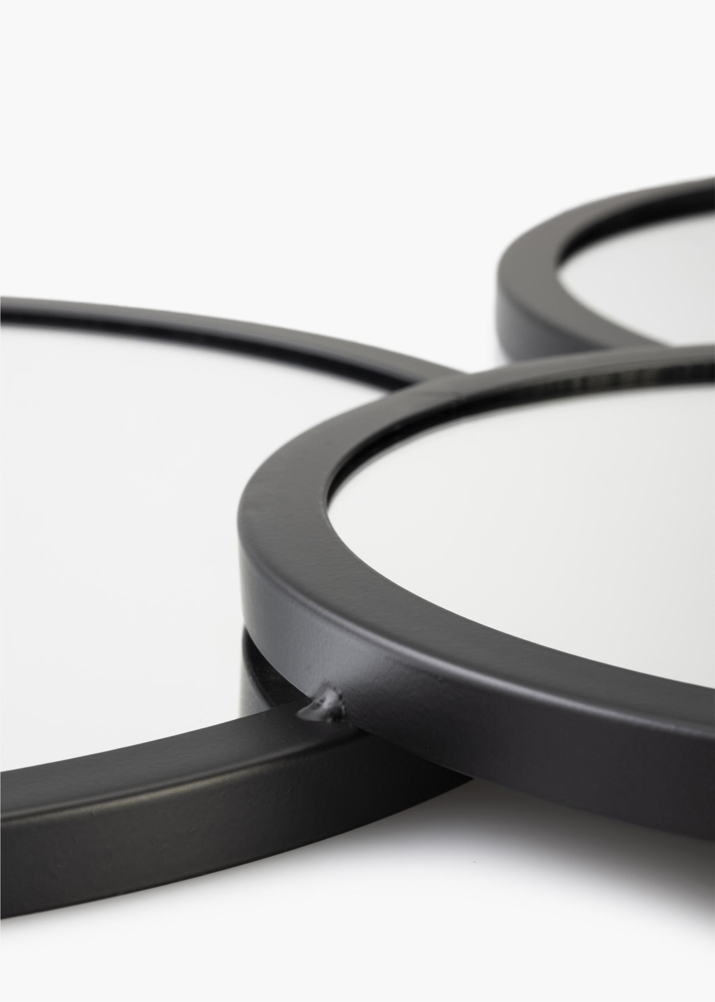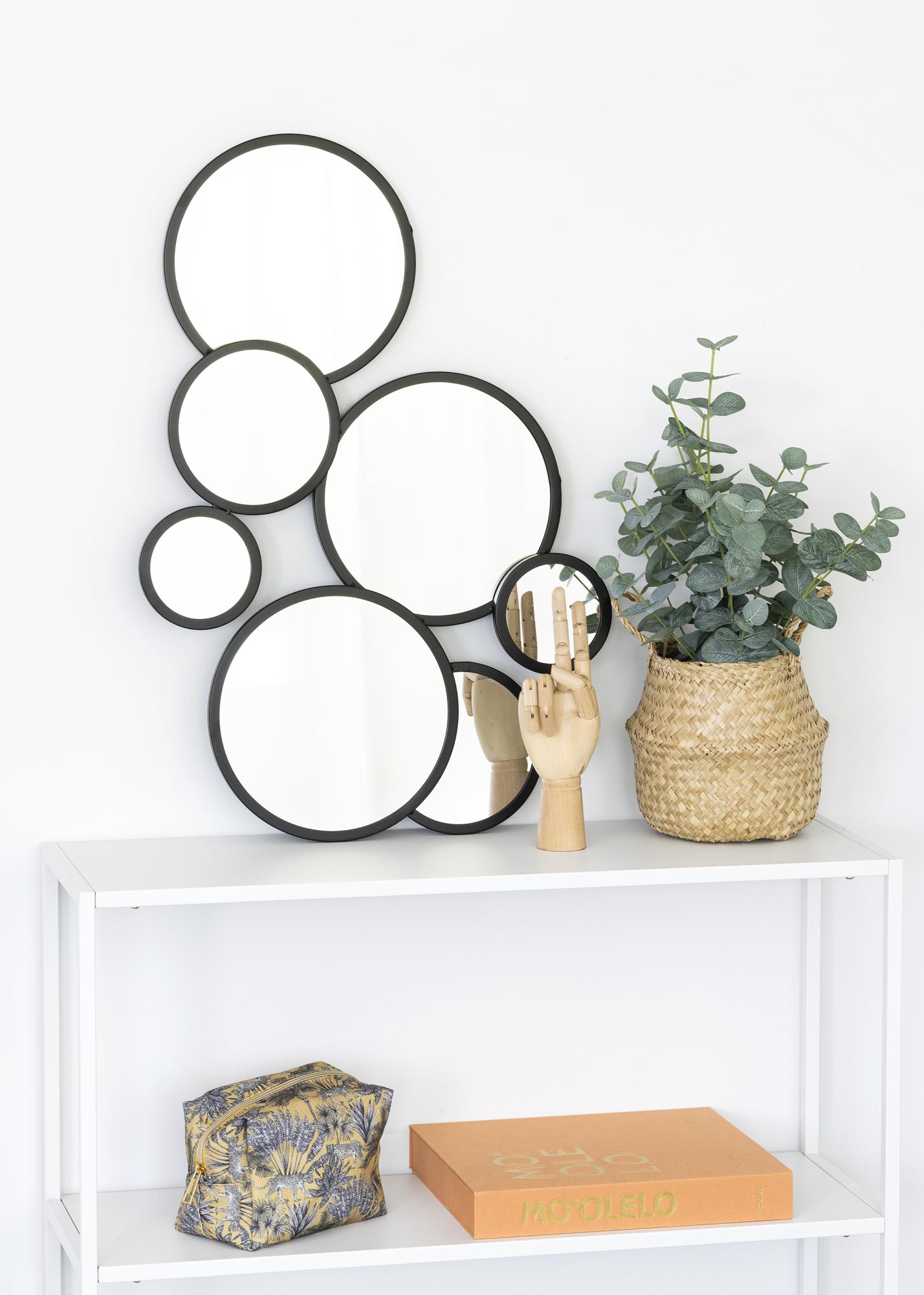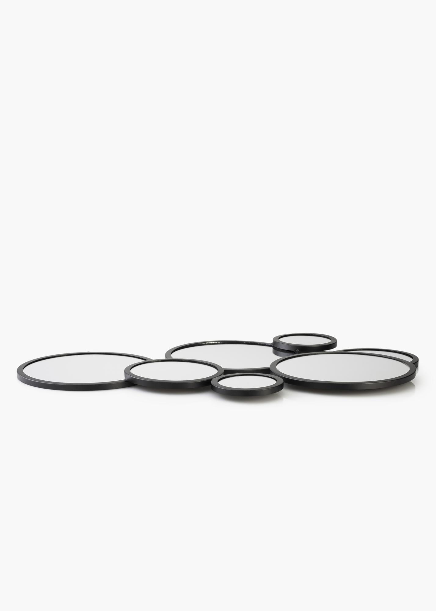 Bubbles je pěkné zrcadlo v unikátním designu s mnoha menšími kruhovými zrcadly spojenými do jednoho. Zrcadlo měří 72x43 cm a má trendy černý odstín. Nástěnné úchyty jsou k dispozici pro vodorovné zavěšení, ale zrcadlo může být také pěkně nakloněné proti stěně ve stoje. Zrcadlo je vyrobeno z kovu.