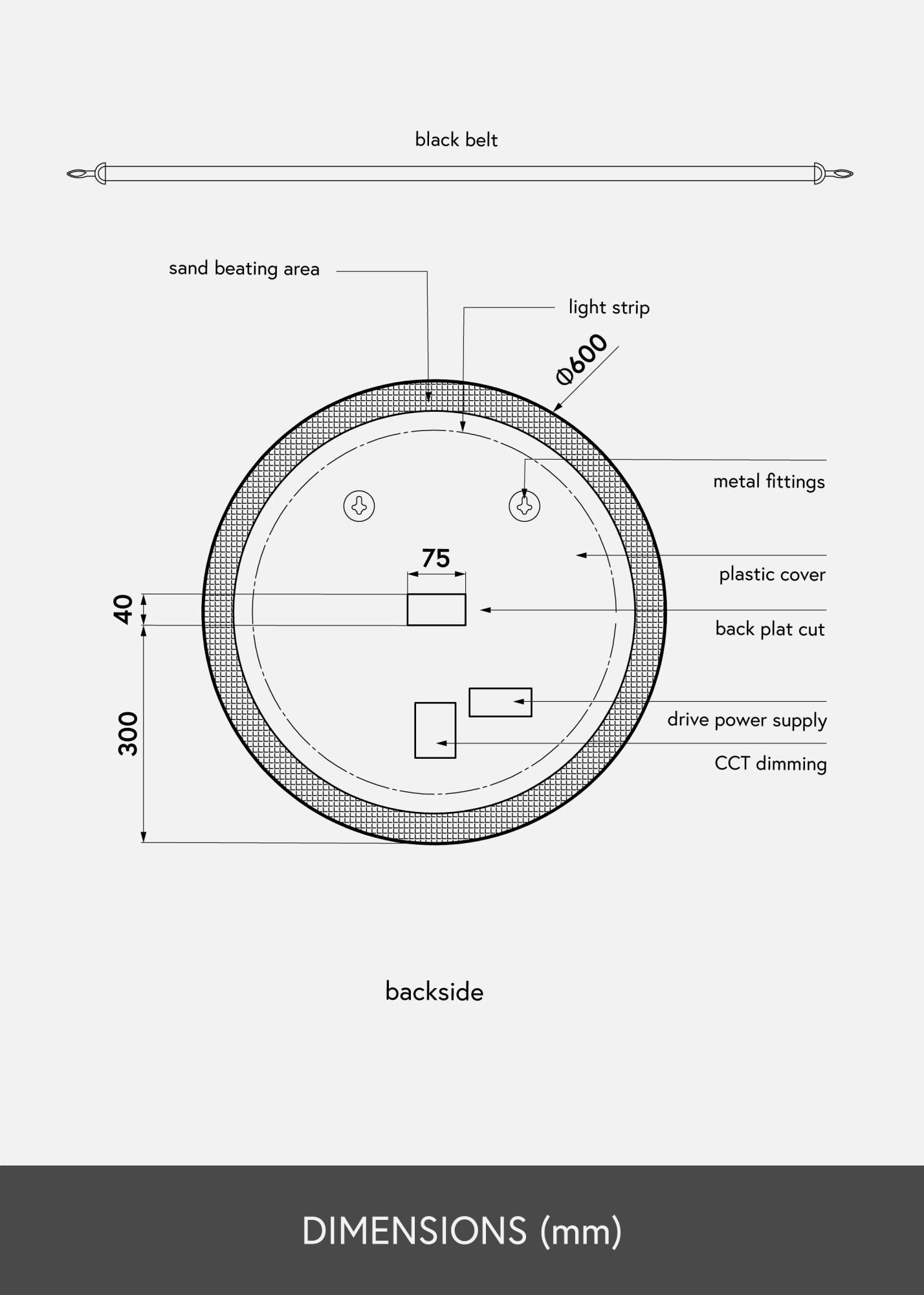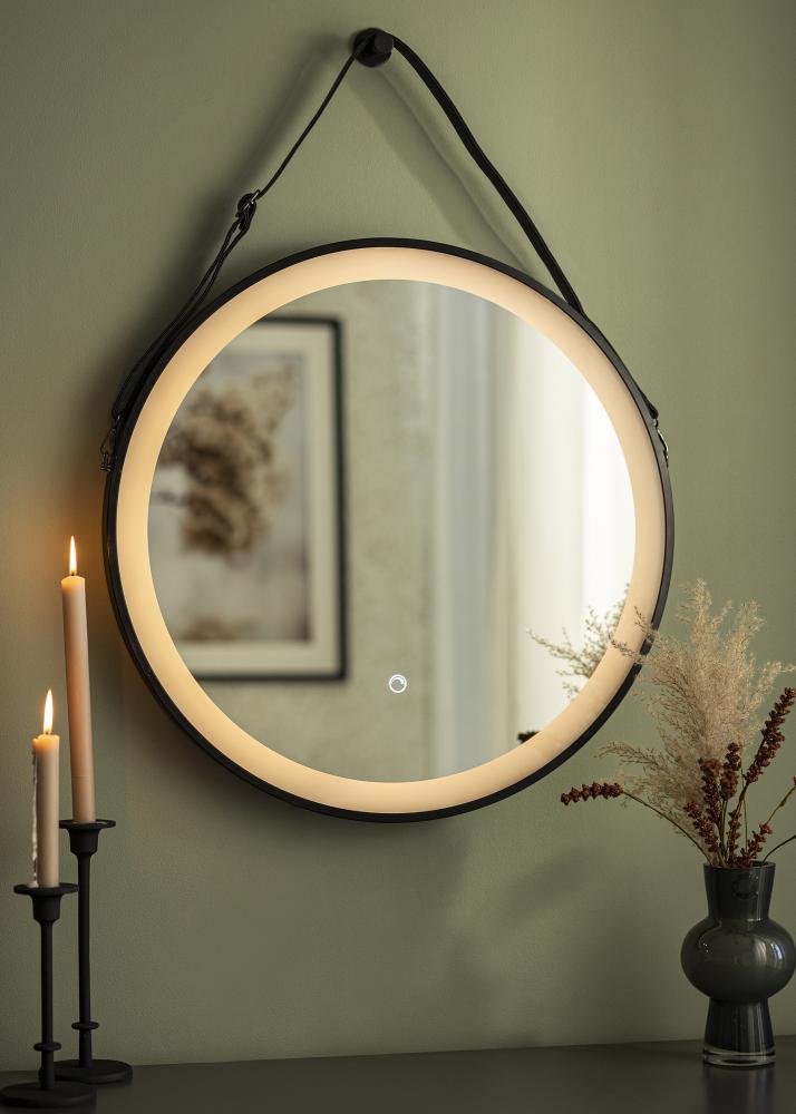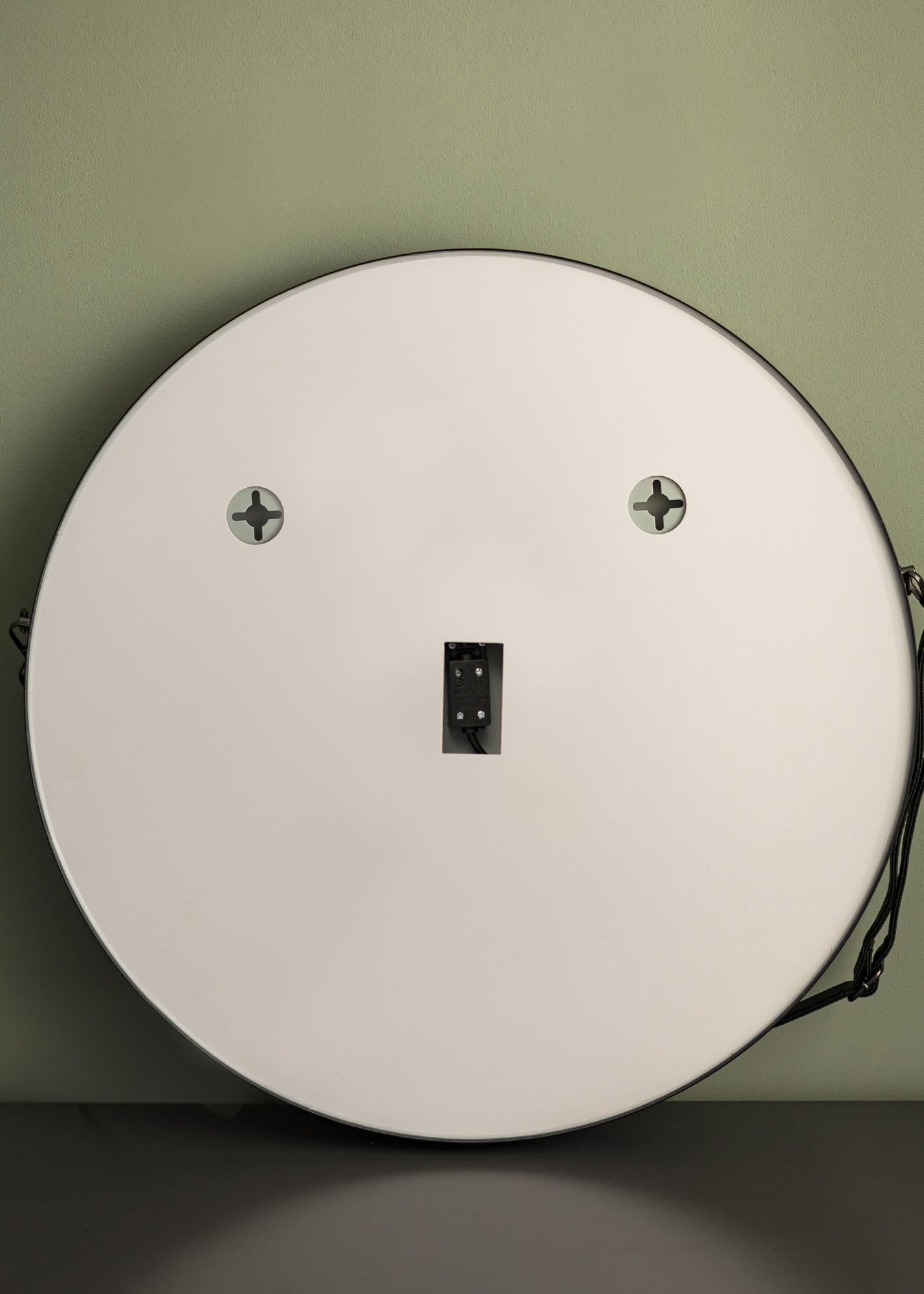 Tento koupelnový zrcadlo má industriální design s černým odstínem a trendy kulatým tvarem. Zrcadlo měří 60 cm v průměru a má připojený řemínek z černohnědé kůže pro zavěšení. Kolem skleněného zrcadla je integrované LED osvětlení, které poskytuje teplé bílé světlo v rozmezí 3000K. Osvětlení je stmívatelné a snadno nastavíte jeho intenzitu podržením dotykového tlačítka na obrazovce po několik sekund. Zrcadlo si pamatuje poslední nastavení světla při vašem dalším zapnutí. To vám umožňuje vždy se zrcadlit v dobrém světle! Zrcadlo je schváleno pro koupelny, ale také je pěkným dekoračním prvkem na ostatních stěnách domova! Zrcadlo je určeno pro pevnou instalaci a připojuje se k vypínači. Aby zrcadlo správně fungovalo, mělo by být připojeno k běžnému vypínači, nikoli ke stmívacímu vypínači.