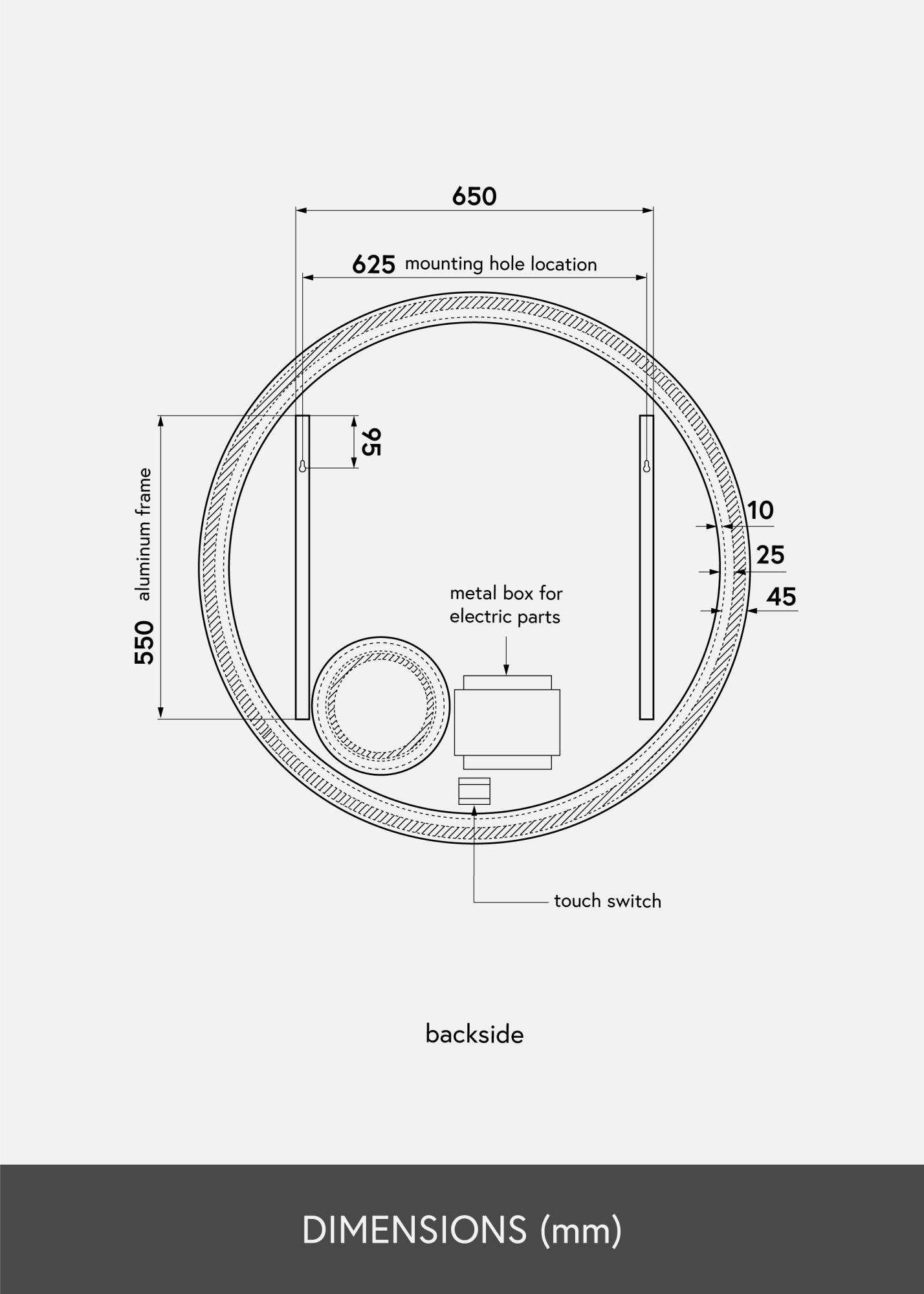 Toto zrcadlo má trendy minimalistický vzhled bez rámu, díky čemuž vypadá skvěle jak v koupelně, tak v hale. Zrcadlo je určeno pro pevnou instalaci a připojuje se ke spínači. Aby zrcadlo fungovalo správně, mělo by být připojeno ke standardnímu spínači, nikoli k stmívači.