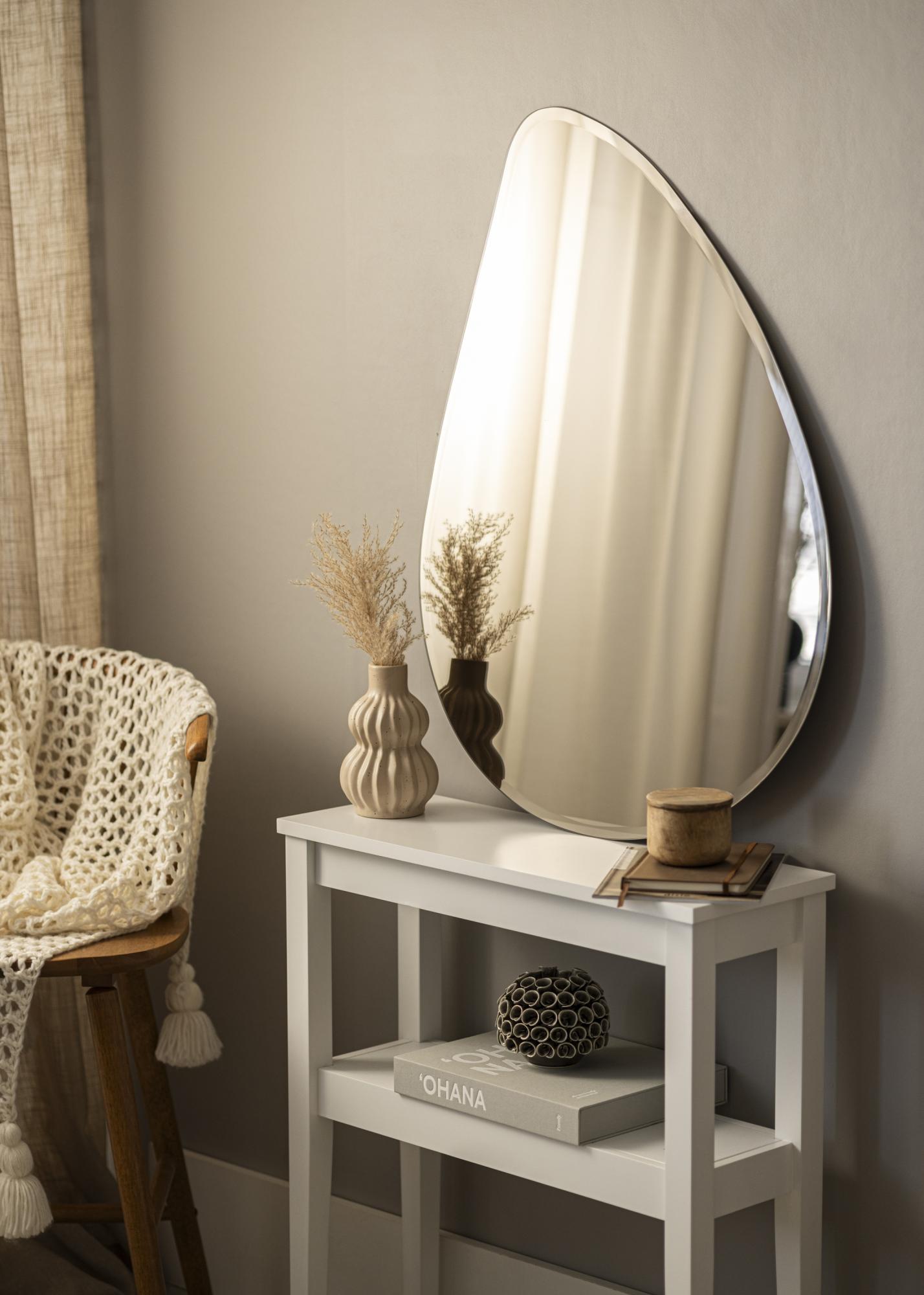 Toto je módní kapkovité zrcadlo s ještě módnějším zrcadlovým sklem, tónovaným do elegantního odstínu tmavého bronzu. Tónované zrcadlové sklo má velký efekt a krásnou bronzovou barvu lze snadno sladit s mnoha různými barevnými schématy interiéru. Zrcadlo je velmi tenké a nemá žádný rám, což v kombinaci s luxusně fasetovanými hranami dále posiluje elegantní a moderní vzhled. Je to velmi dekorativní nástěnné zrcadlo, které zaručeně přitáhne pohledy bez ohledu na to, kam je umístěno – v obývacím pokoji, stejně jako v hale nebo ložnici.