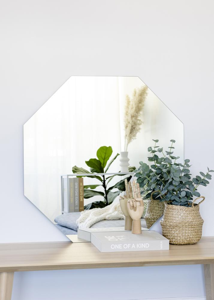 Tato stylová zrcadla od KAILA je ideální pro obývací pokoj, předsíň nebo ložnici. Osmiboký tvar bez rámu poskytuje dokonalou rovnováhu mezi minimalismem a půvabem. Vybavením různými tvary a materiály můžete vytvořit dynamiku v domácnosti a toto hranaté zrcadlo poskytuje pěkný kontrast k ostatnímu nábytku a interiérovým prvkům. Zrcadlo má nástěnný držák a snadno se zavěsí na stěnu.