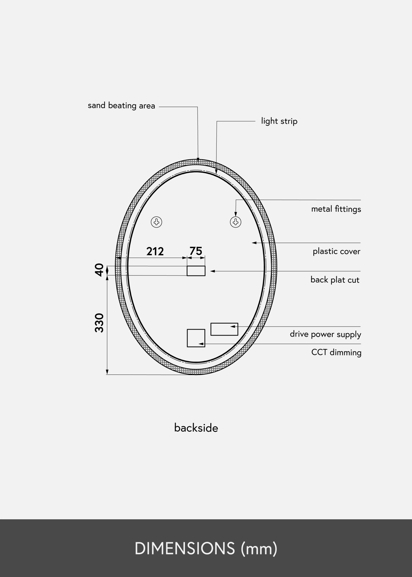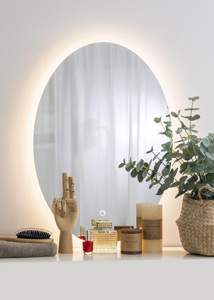Toto je skutečně koupelnové zrcadlo v elegantním designu s oválným tvarem a integrovaným LED osvětlením! Integrované LED osvětlení je stmívatelné a jeho intenzita se snadno nastavuje stisknutím vodotěsného dotykového tlačítka na obrazovce. Osvětlení vyzařuje v teplé bílé barvě 3000K za zrcadlem a poskytuje pěkný přední svit. LED je úsporný světelný zdroj, který poskytuje rovnoměrné a přirozené světlo. Zrcadlo je schváleno pro koupelny. Koupelnové zrcadlo je určeno pro pevnou instalaci a připojuje se k vypínači. Aby zrcadlo správně fungovalo, mělo by být připojeno k běžnému vypínači, nikoli ke stmívačovému vypínači.