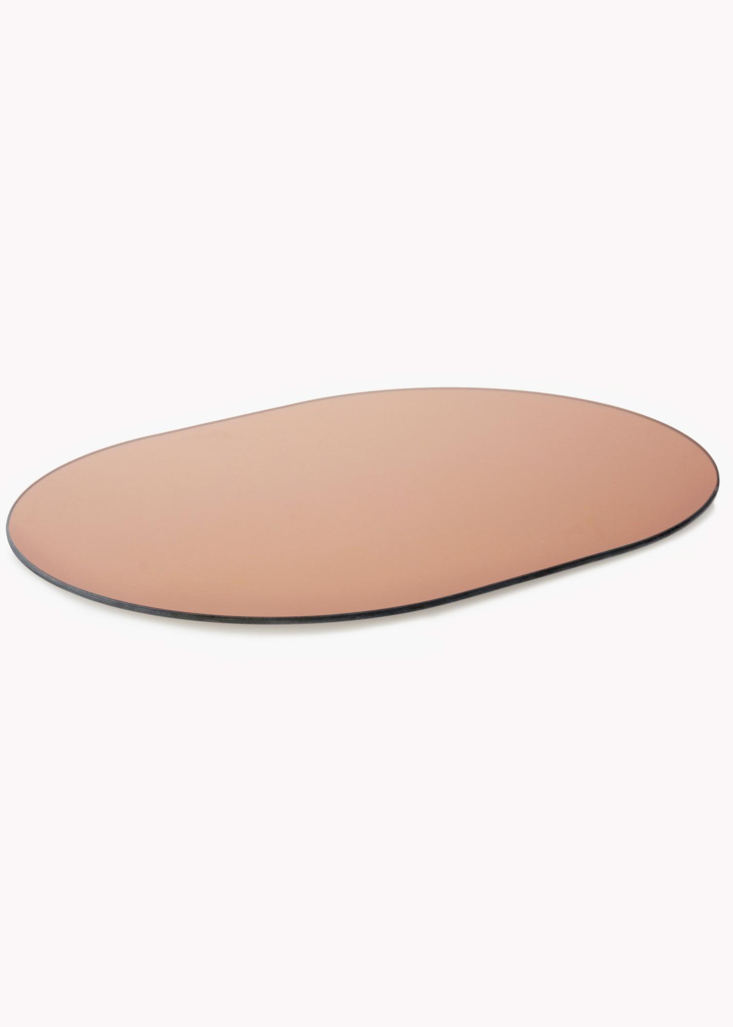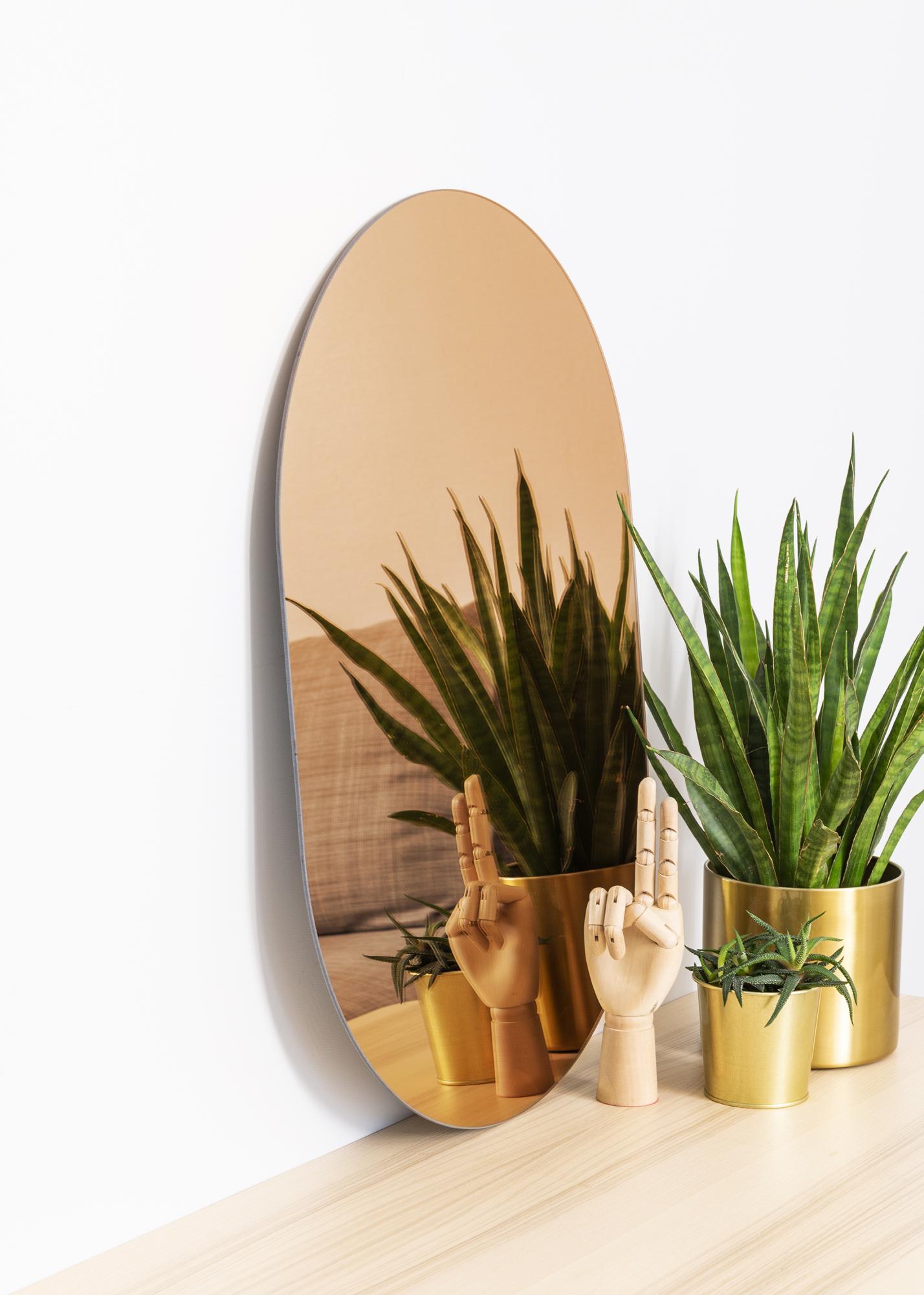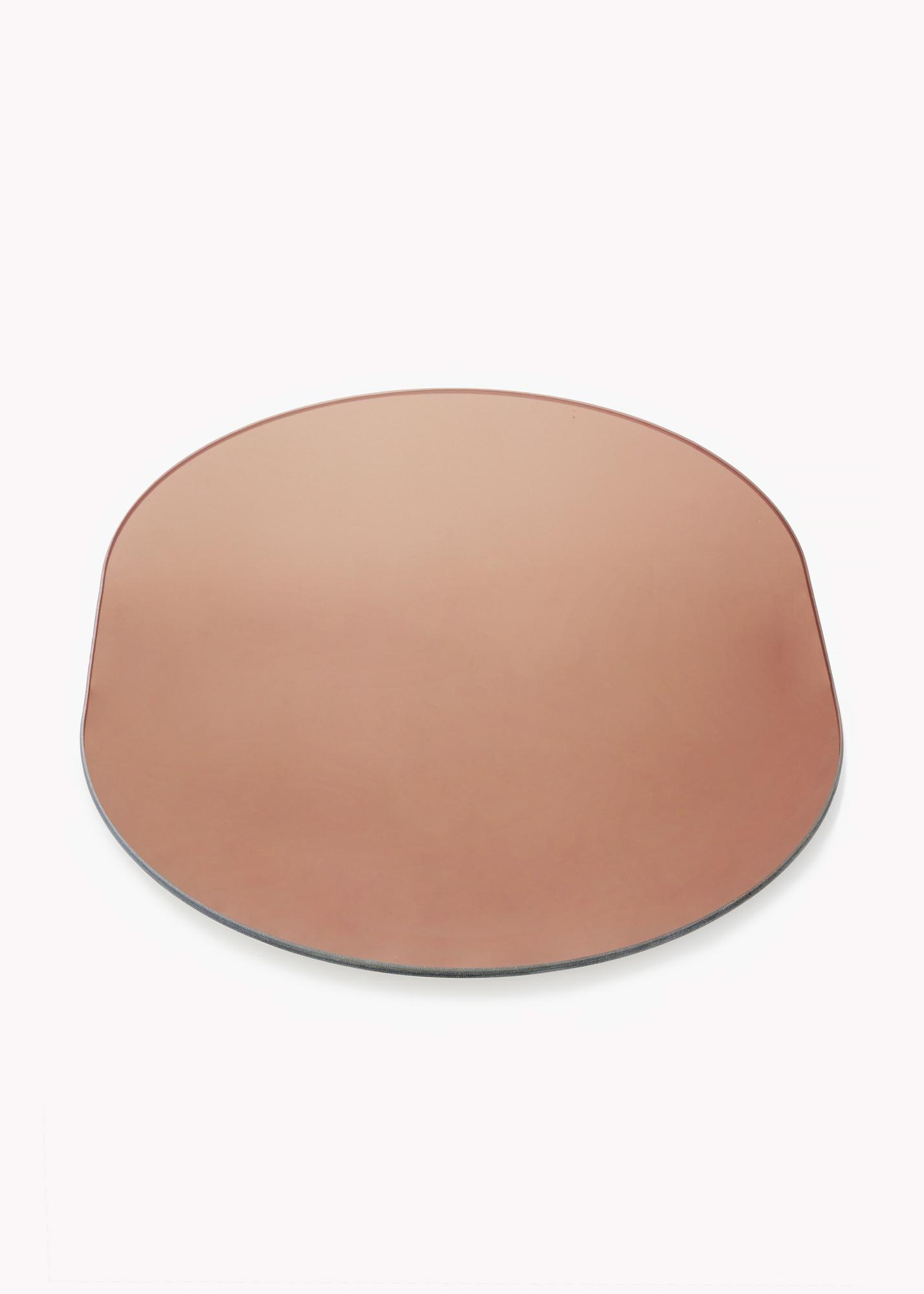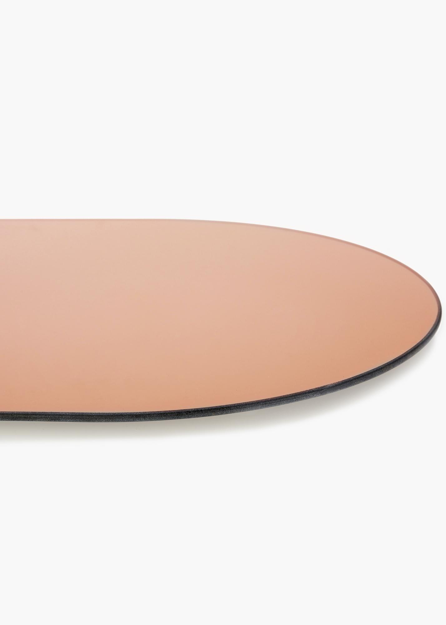 Toto oválné zrcadlo je velmi tenké a nemá žádný rám, což mu dodává módní a elegantní vzhled. Módní pocit je dále umocněn zrcadlovým sklem, které bylo zabarveno do stylového odstínu růžového zlata. Tento detail činí zrcadlo velmi poutavým, zatímco si zachovává svou elegantní prezentaci.