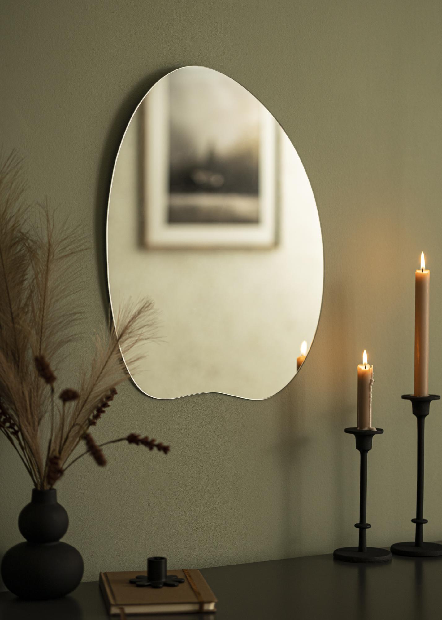 Pokud hledáte nástěnné zrcadlo ve vzrušujícím tvaru, toto je zrcadlo pro vás. Unikátní design s oblými tvary a lehce zvlněným spodním okrajem je dokonale doplněn tenkým zrcadlovým sklem o tloušťce 4 mm. Zrcadlo nemá žádný rám, což mu dodává minimalistický vzhled. Díky chytrým nástěnným závěsům na zadní straně můžete zrcadlo snadno zavěsit na zeď ve svislé poloze.