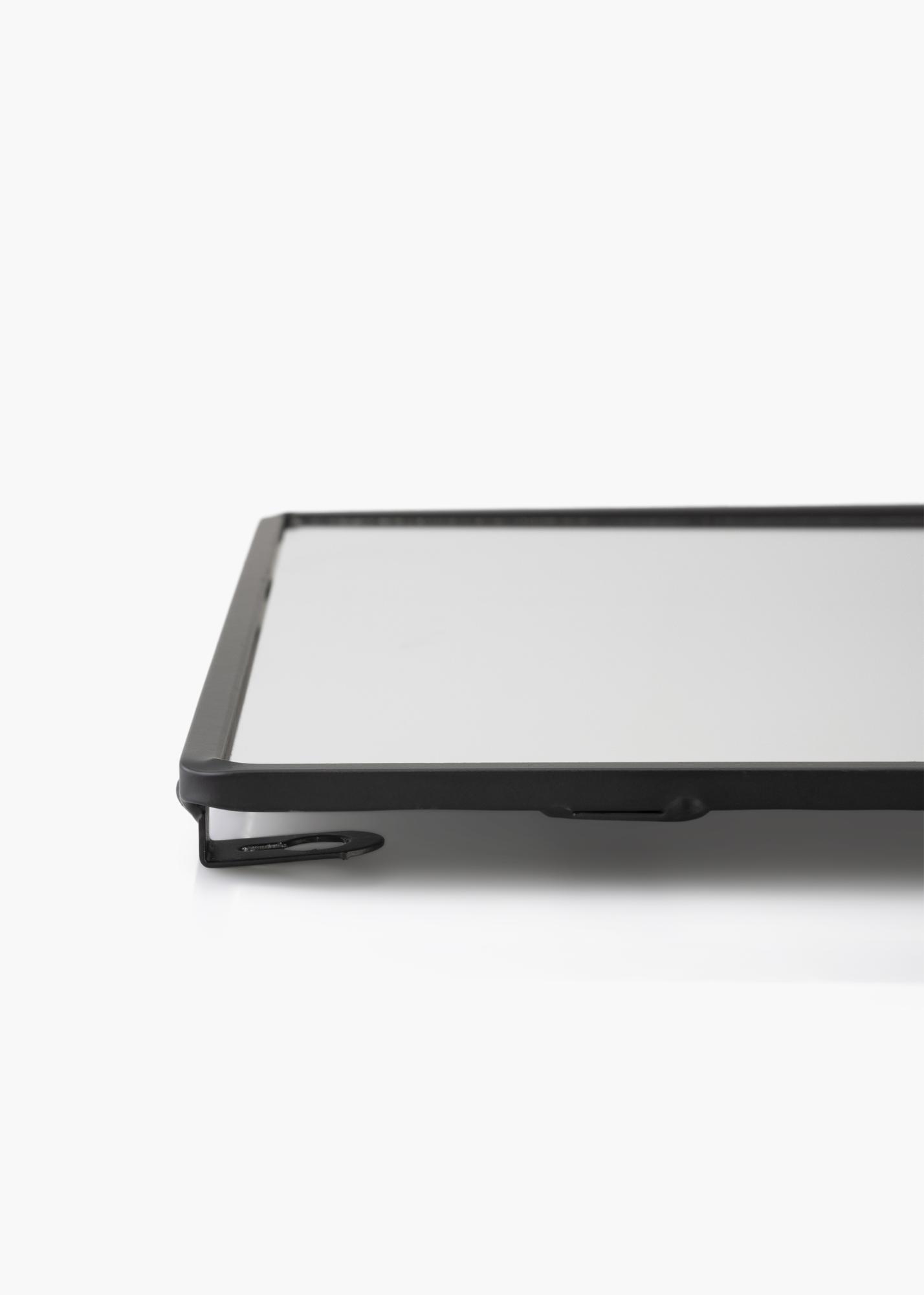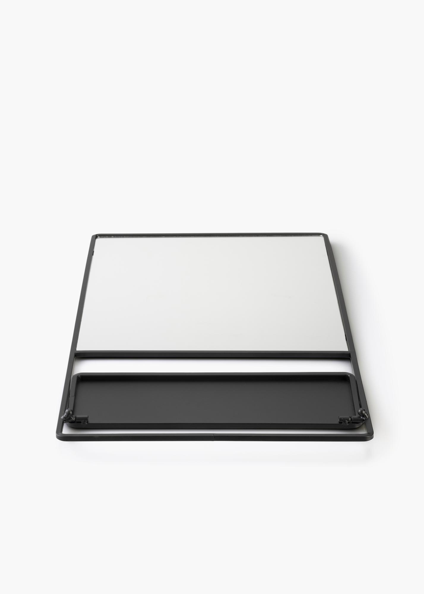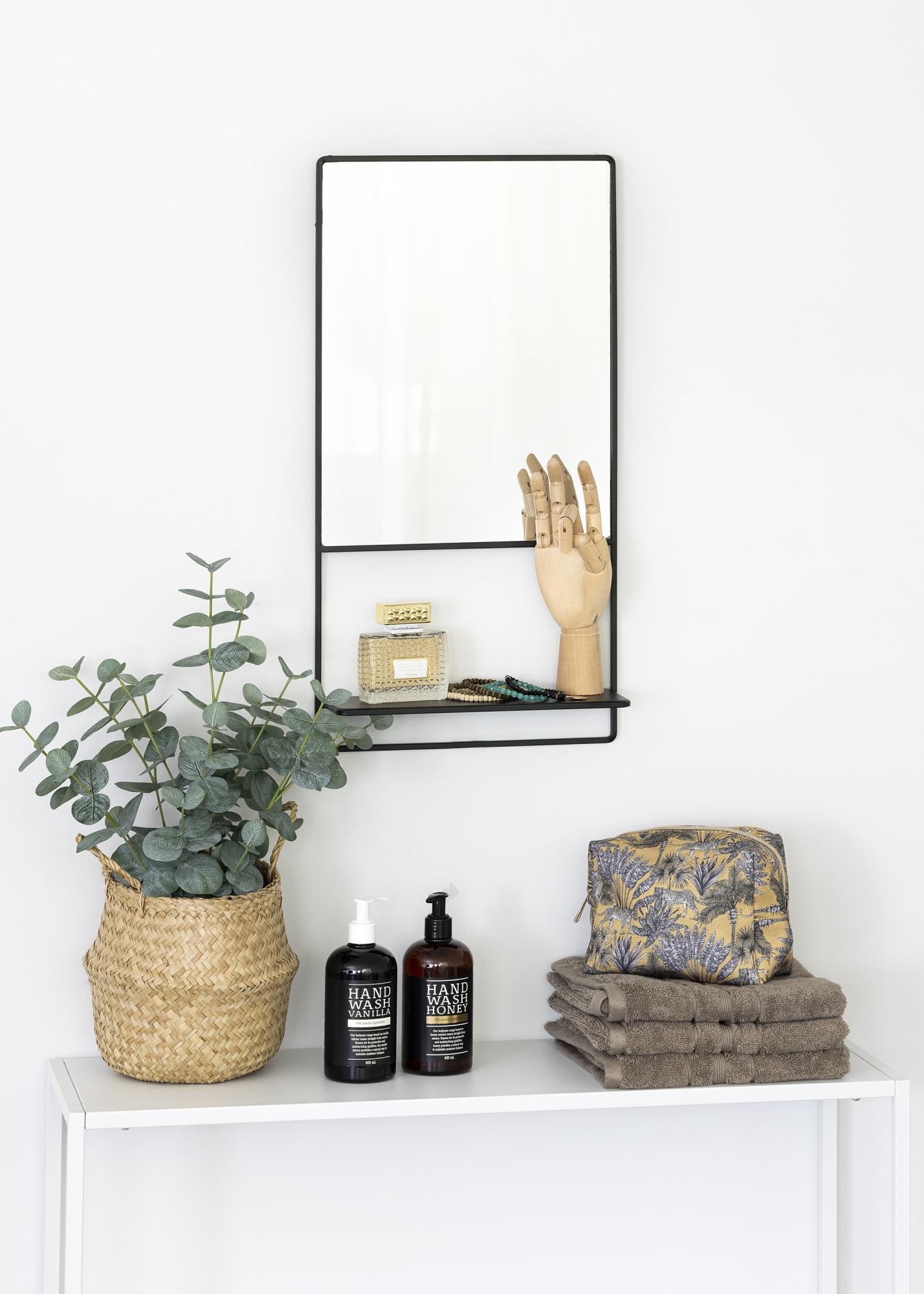 Tento stylový nástěnný zrcadlo s policí je švédský design od KAILA. Zrcadlo je v černém odstínu a je vyrobeno z kovu. Povrch zrcadla má obdélníkový tvar a je orámován černým kovovým okrajem. Ve spodní části je umístěna police - ideální pro umístění pěkné dekorace nebo na uložení líčení! Zrcadlo měří 31x60 cm a má nástěnný úchyt.