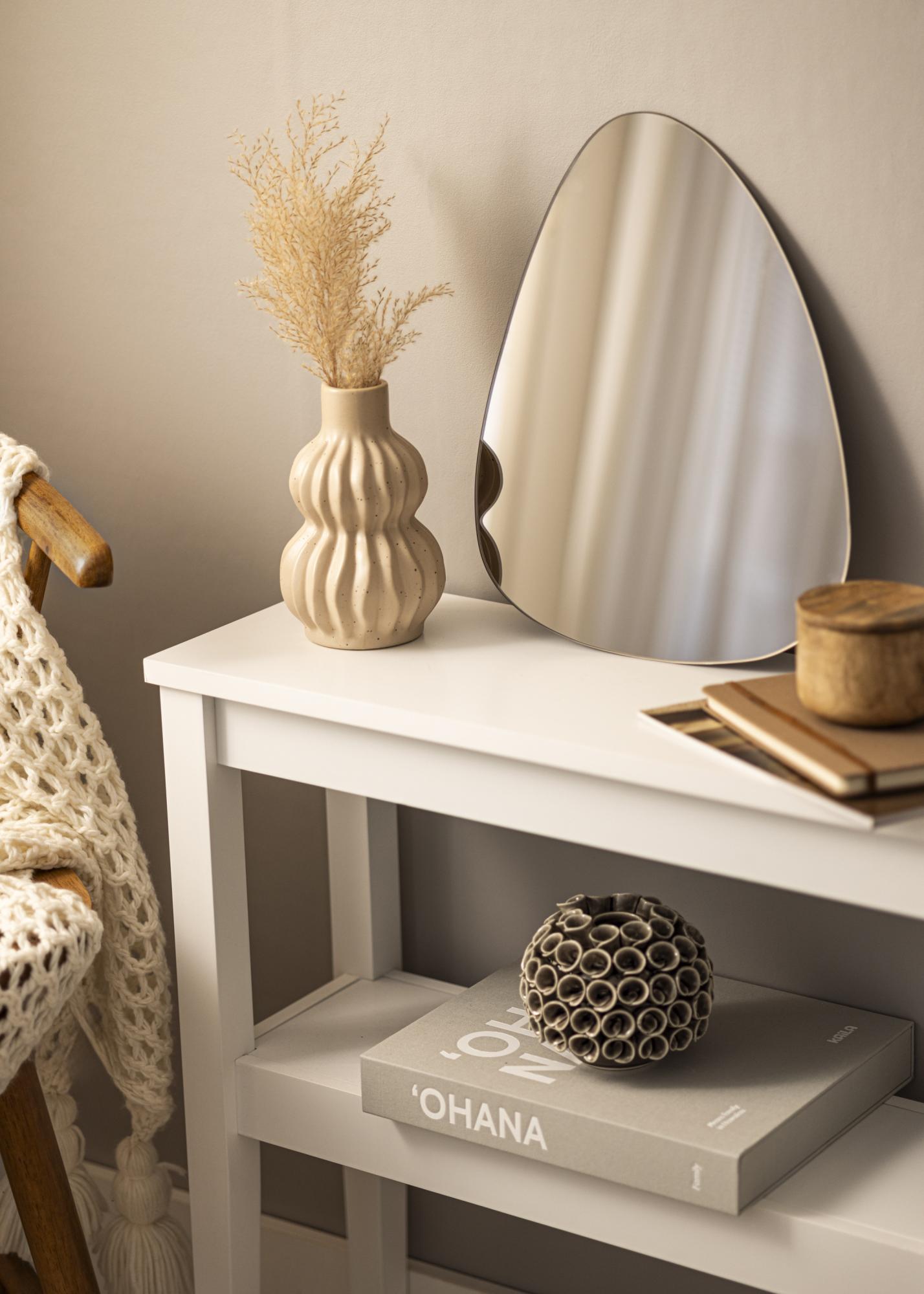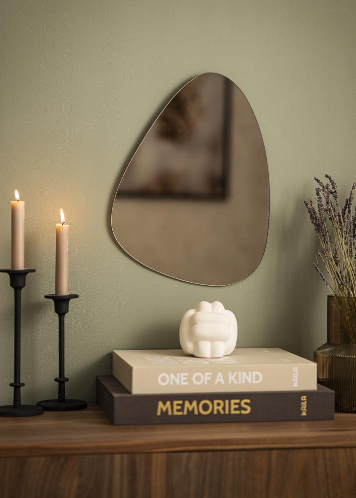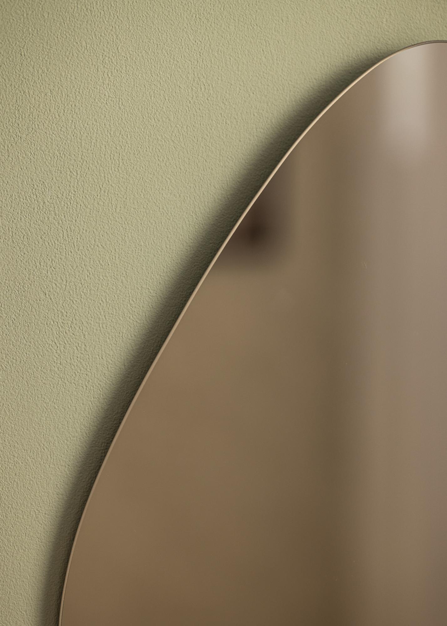 Toto asymetrické zrcadlo se stane opravdu stylovým a trendovým prvkem ve vašem domově! Kromě zajímavého vejčitého designu má toto zrcadlo také stylové bronzové zrcadlové sklo, které dále posiluje moderní vzhled a krásně ladí s mnoha různými barevnými schématy. Měkký tvar v kombinaci se skutečností, že zrcadlo je velmi tenké a nemá žádný rám, dodává zrcadlu vzácně elegantní a štíhlý pocit. Perfektní jako funkční a trendová nástěnná dekorace v obývacím pokoji, chodbě nebo ložnici.