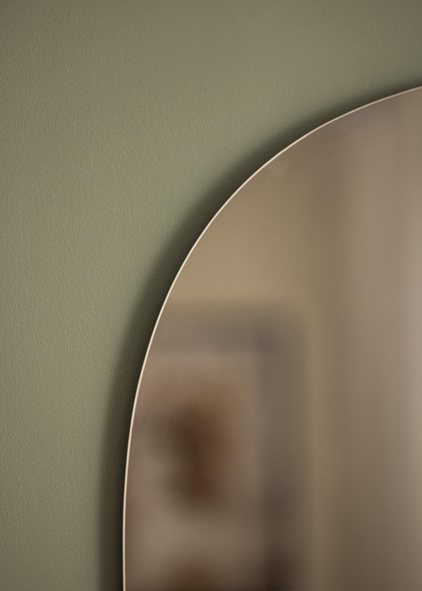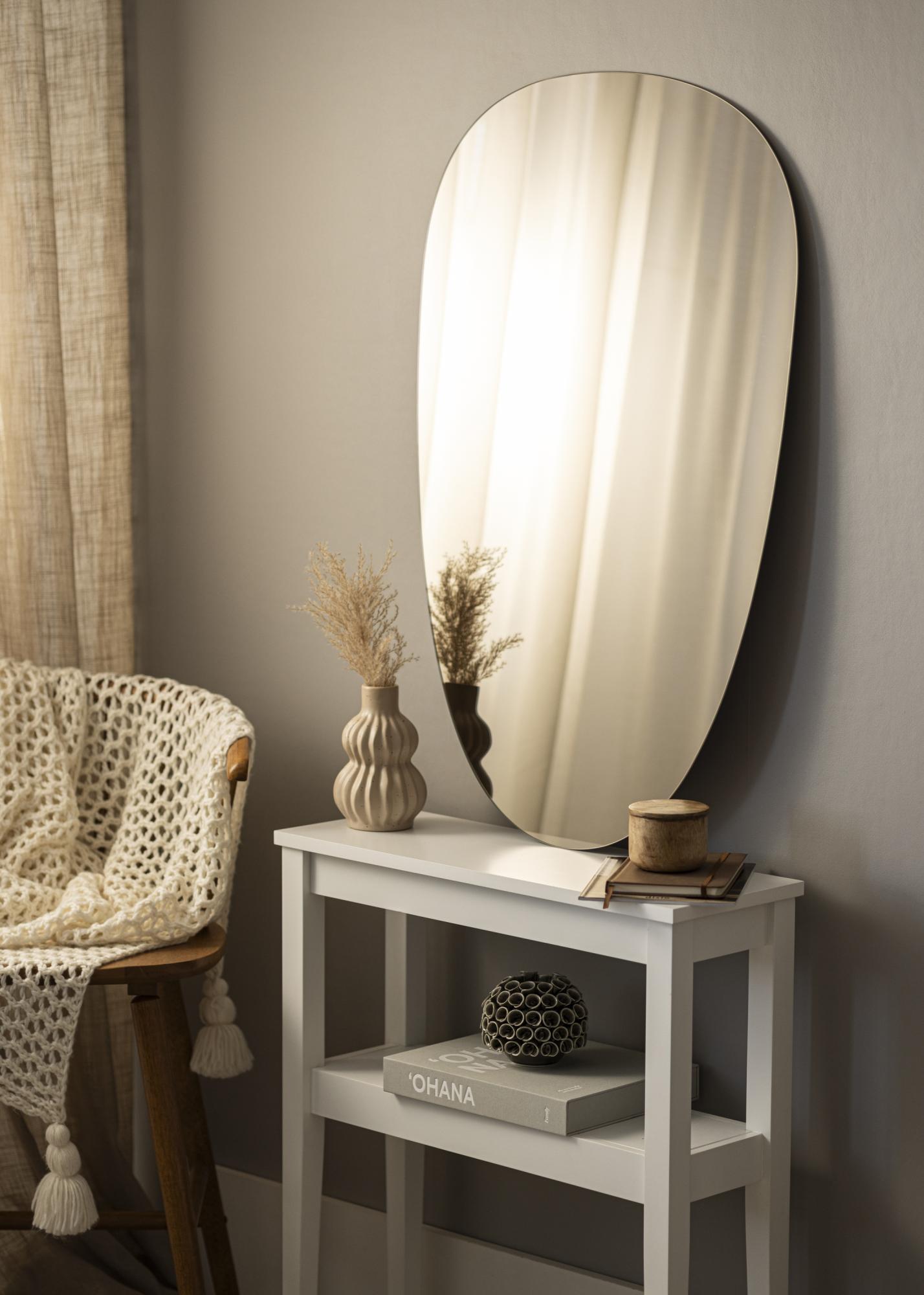 Toto je asymetrické zrcadlo s měkkými tvary a velmi elegantním a trendovým vzhledem. Zrcadlové sklo je tónované v stylovém odstínu tmavého bronzu, což z něj činí efektivní dekorační prvek, který se snadno sladí s mnoha různými barevnými schématy v interiéru. Zrcadlo je také velmi tenké a nemá žádný rám, což dále posiluje stylový a trendový pocit. Umístěte zrcadlo do chodby, obývacího pokoje, ložnice – nebo do jakékoli místnosti, kde chcete přidat funkci a elegantní švédský design!