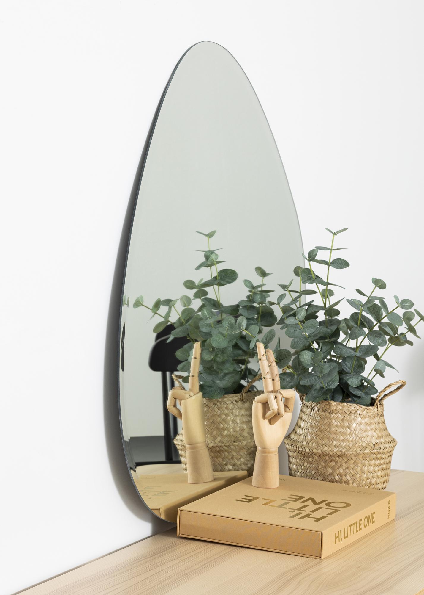 Toto nástěnné zrcadlo od KAILA má elegantní asymetrický tvar, který připomíná kapku. Zrcadlo je velmi tenké a nemá žádný rám, což v kombinaci s luxusně fazetovanou hranou dále posiluje elegantní a moderní vzhled. Je to velmi dekorativní nástěnné zrcadlo, které zaručeně upoutá pozornost v jakékoliv místnosti, kde bude umístěno – v obývacím pokoji, stejně jako v hale či ložnici. Zrcadlo má rozměry 70x81 cm.
