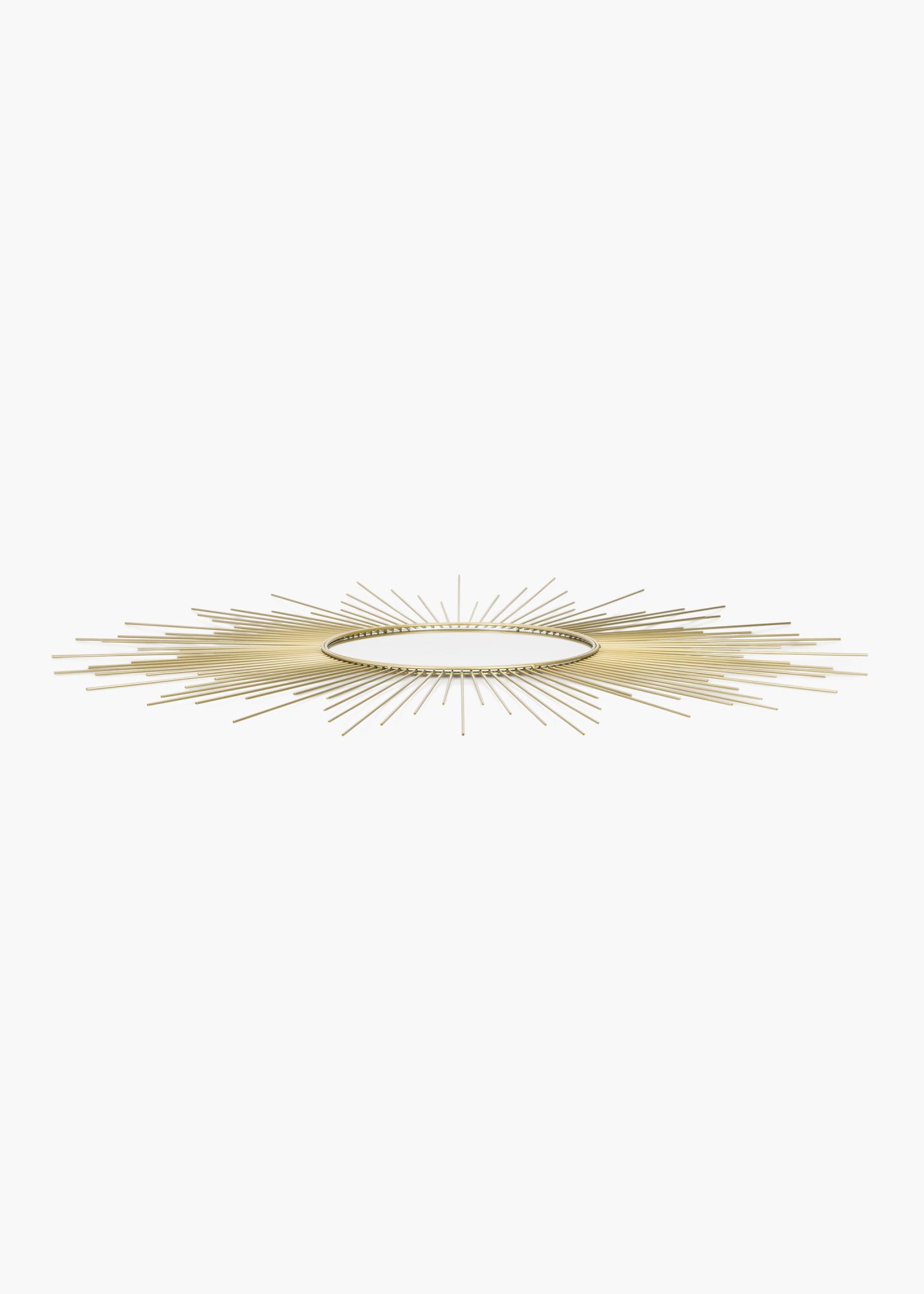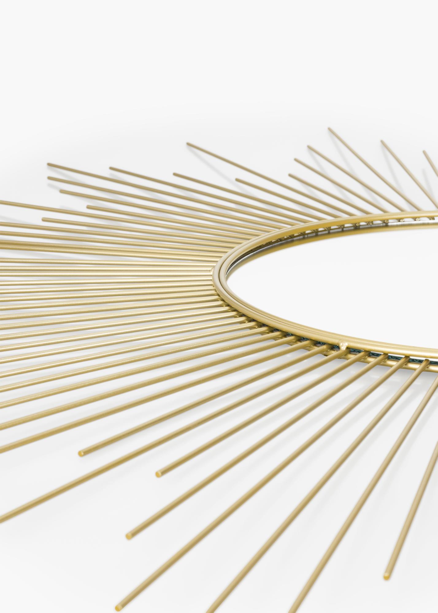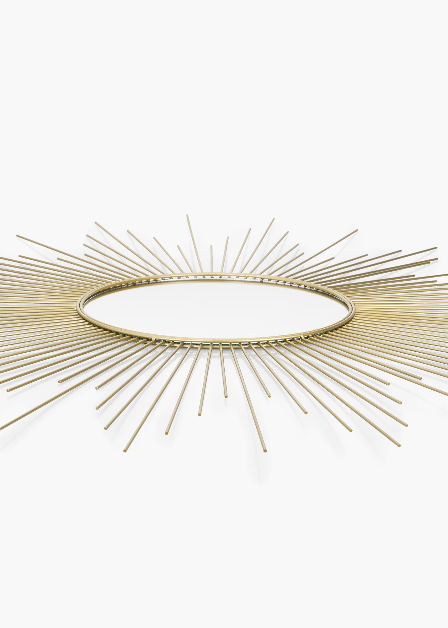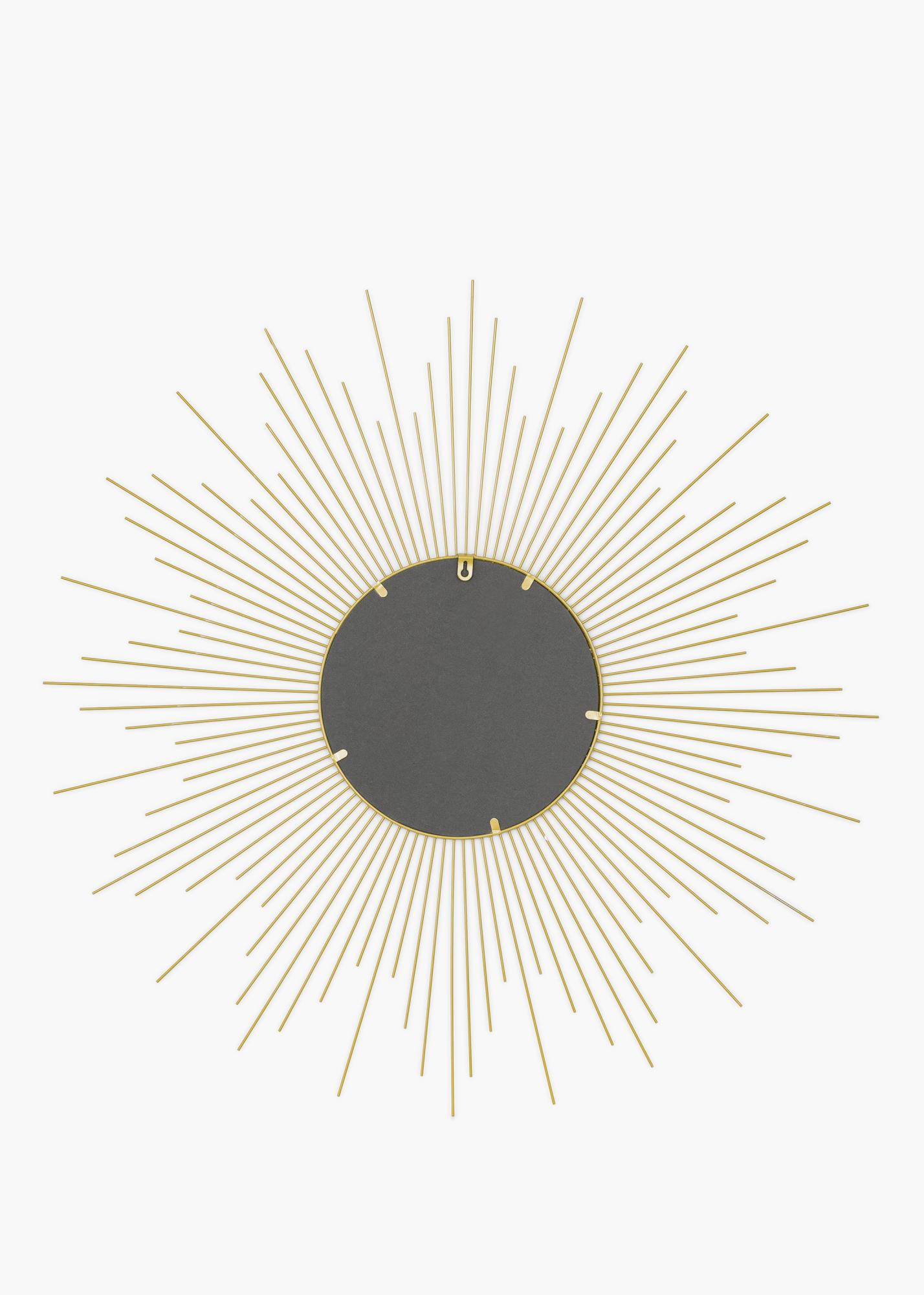Toto je kulaté zrcadlo na zeď s velmi dekorativním designem. Zrcadlové sklo je orámováno vzorem, který připomíná hvězdu a má krásný zlatý odstín. Umístěte toto krásné zrcadlo v domácnosti na pečlivě vybrané místo, kde bude moci vyniknout svým dekorativním stylem a stát se poutavým interiérovým prvkem. Zrcadlo má rozměry 90x90 cm a je vyrobeno z kovu.