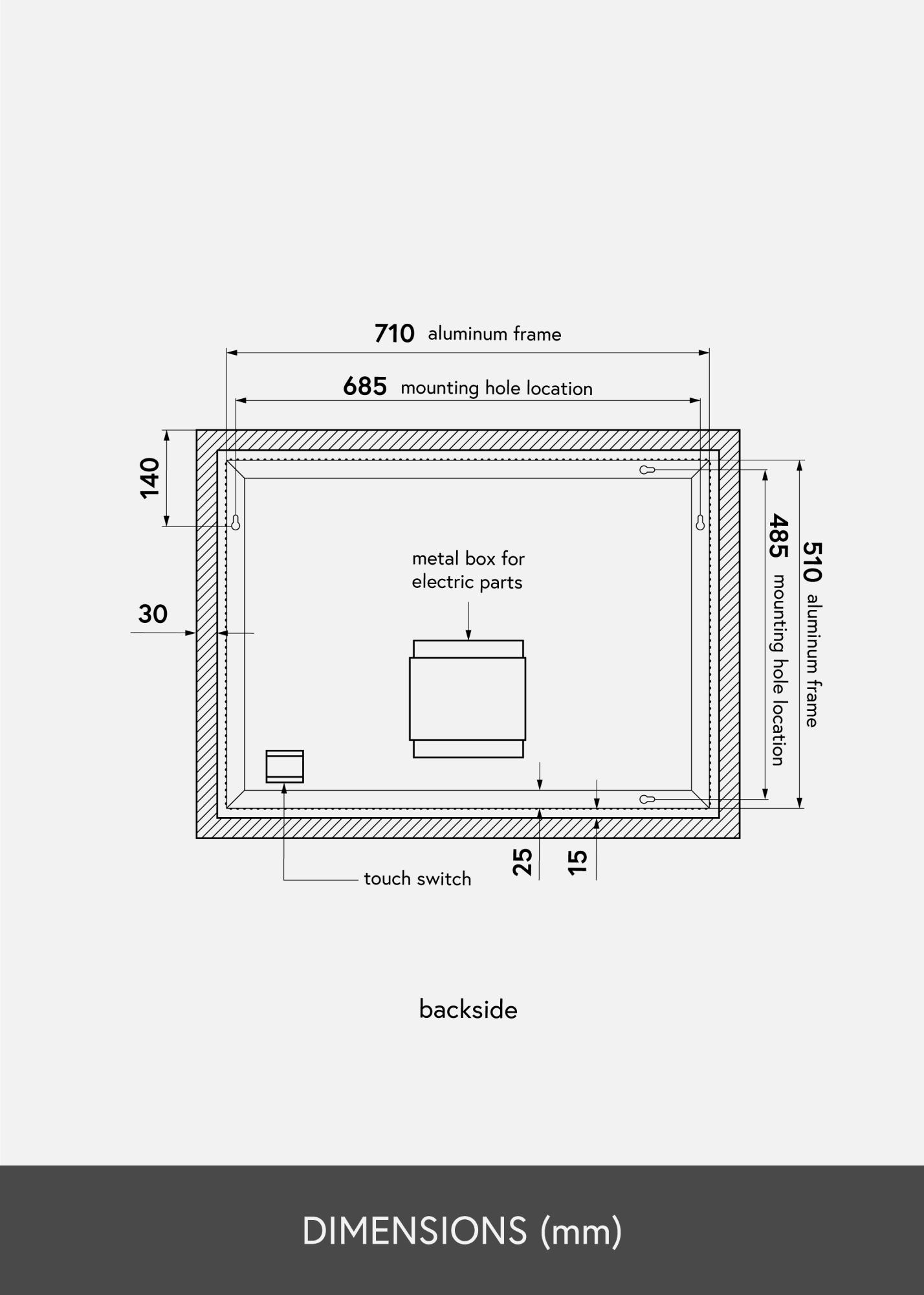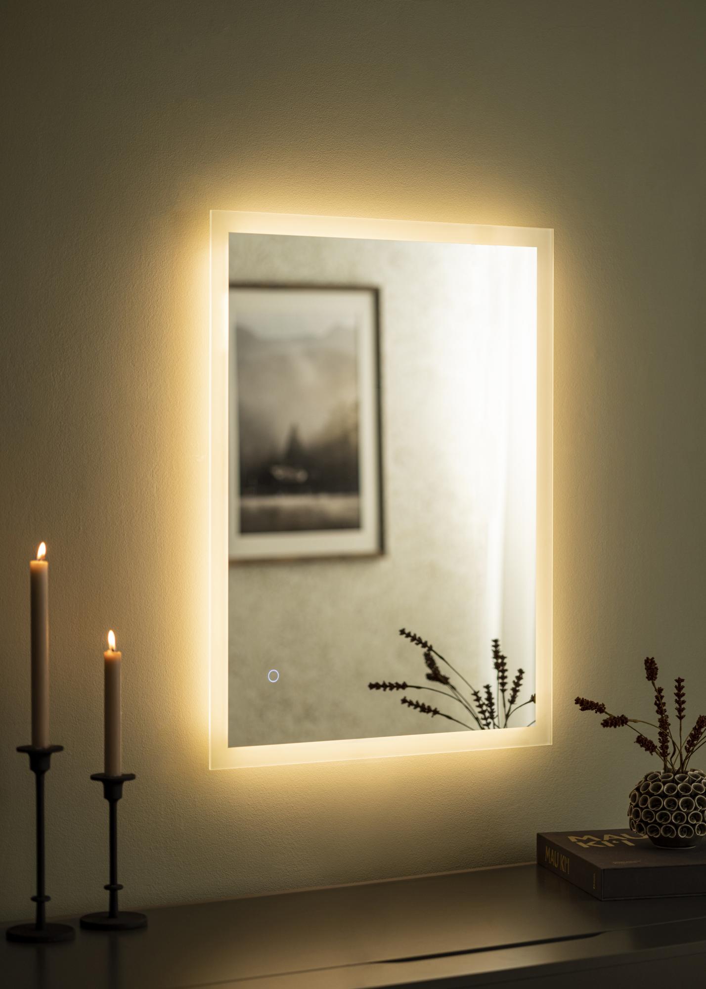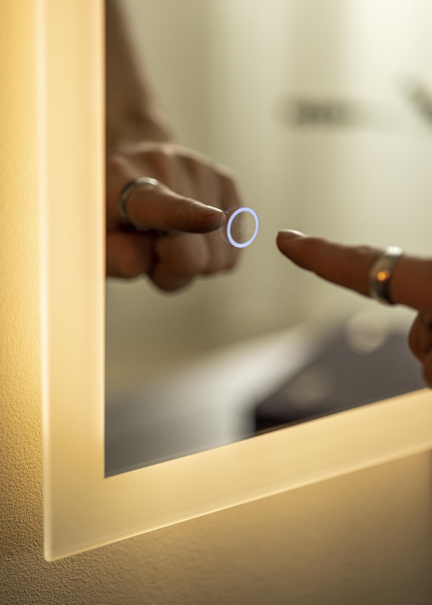 Tento nadčasový zrcadlo s osvětlením zvýší styl vaší koupelny. Má integrovaný LED pásek na zadní straně zrcadla, což má za následek měkké osvětlení, které rámuje zrcadlový povrch. Osvětlení poskytuje svit v 3000K, který můžete stmívat dotykem na tlačítko v jednom rohu zrcadla po několik sekund. Jas lze nastavit od 10%-100%.