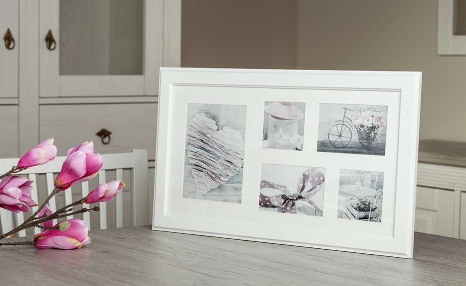 Kolážový rámeček Malmö Bílý - 5 Obrázků má místo pro 5 obrázků různých velikostí.